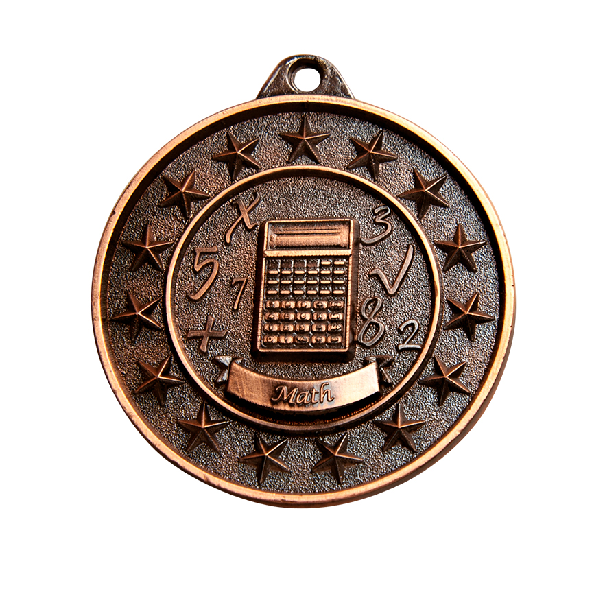 Celebrate academic achievement with these maths award medals, crafted in metal and finished in elegant gold, silver, or bronze. The circular design showcases a detailed calculator and mathematical symbols, highlighted by a classic 'Math' banner. With their professional appearance, these medals offer a memorable way to recognise excellence in mathematics at school or community events.