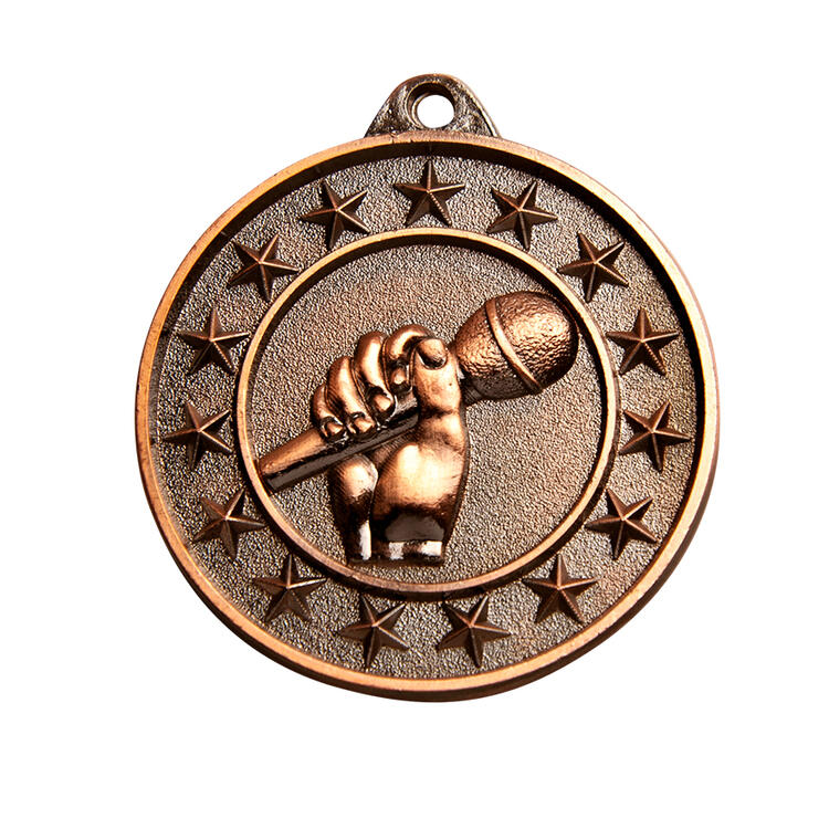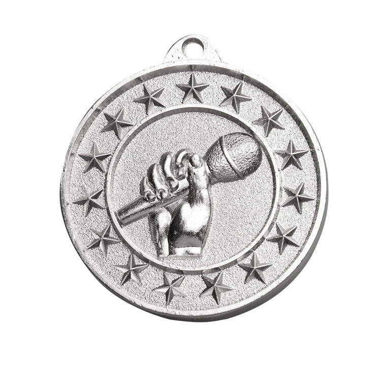 Celebrate expressive achievement with this distinguished public speaking medal. Crafted from metal in a classic circular shape, it is available in gold, silver and bronze finishes. The centre features a hand grasping a microphone, encircled by shining stars, a fitting tribute for excellence in debate, music, and singing competitions.