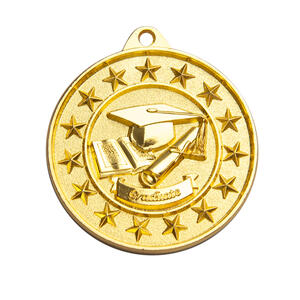 Celebrate achievement with this refined academic excellence award medal, expertly crafted in metal with a polished finish in your choice of gold, silver or bronze. The circular design is highlighted by a graduation cap, diploma, and book motif, encircled by a decorative star border for a distinguished, memorable presentation. Ideal for recognising academic milestones with both style and durability.