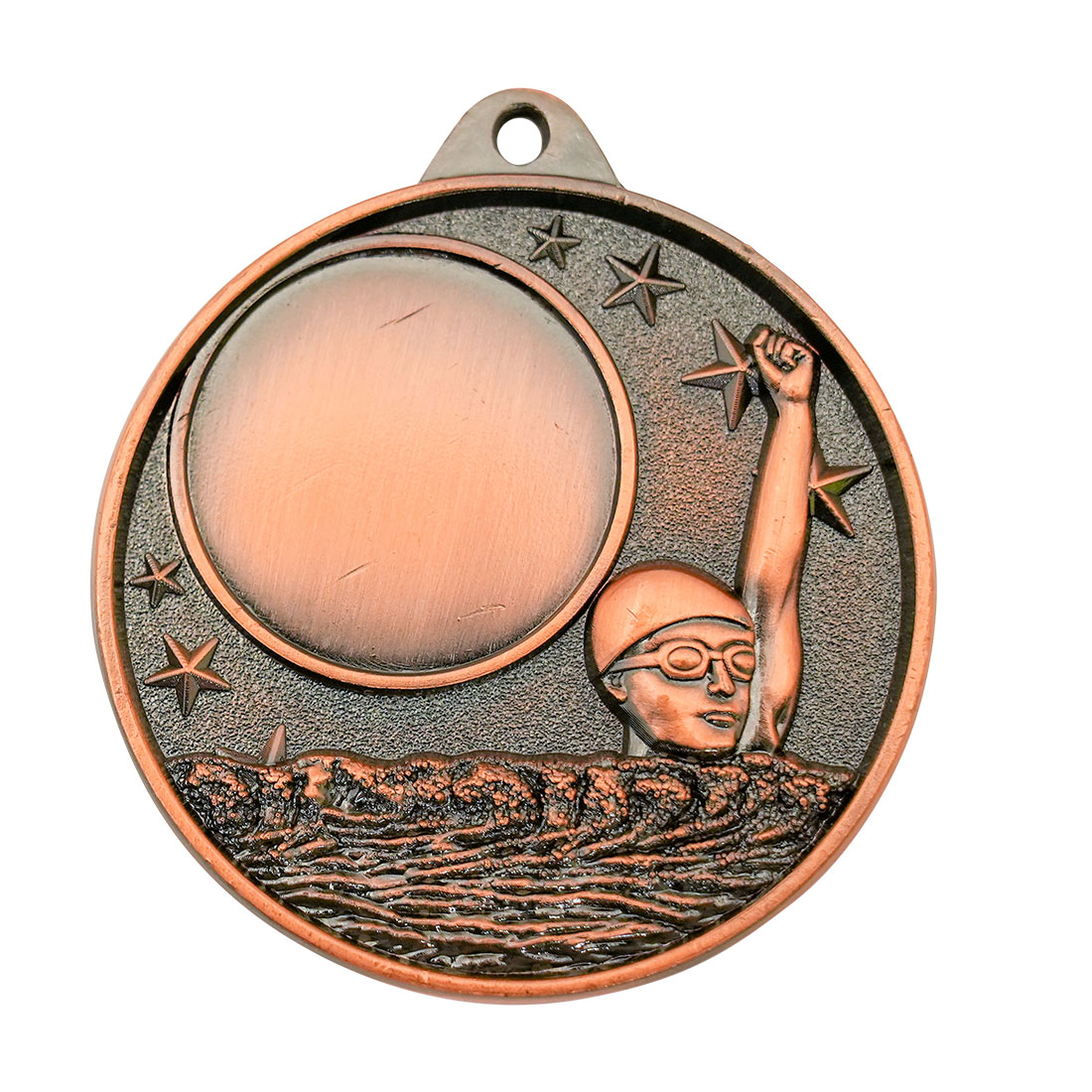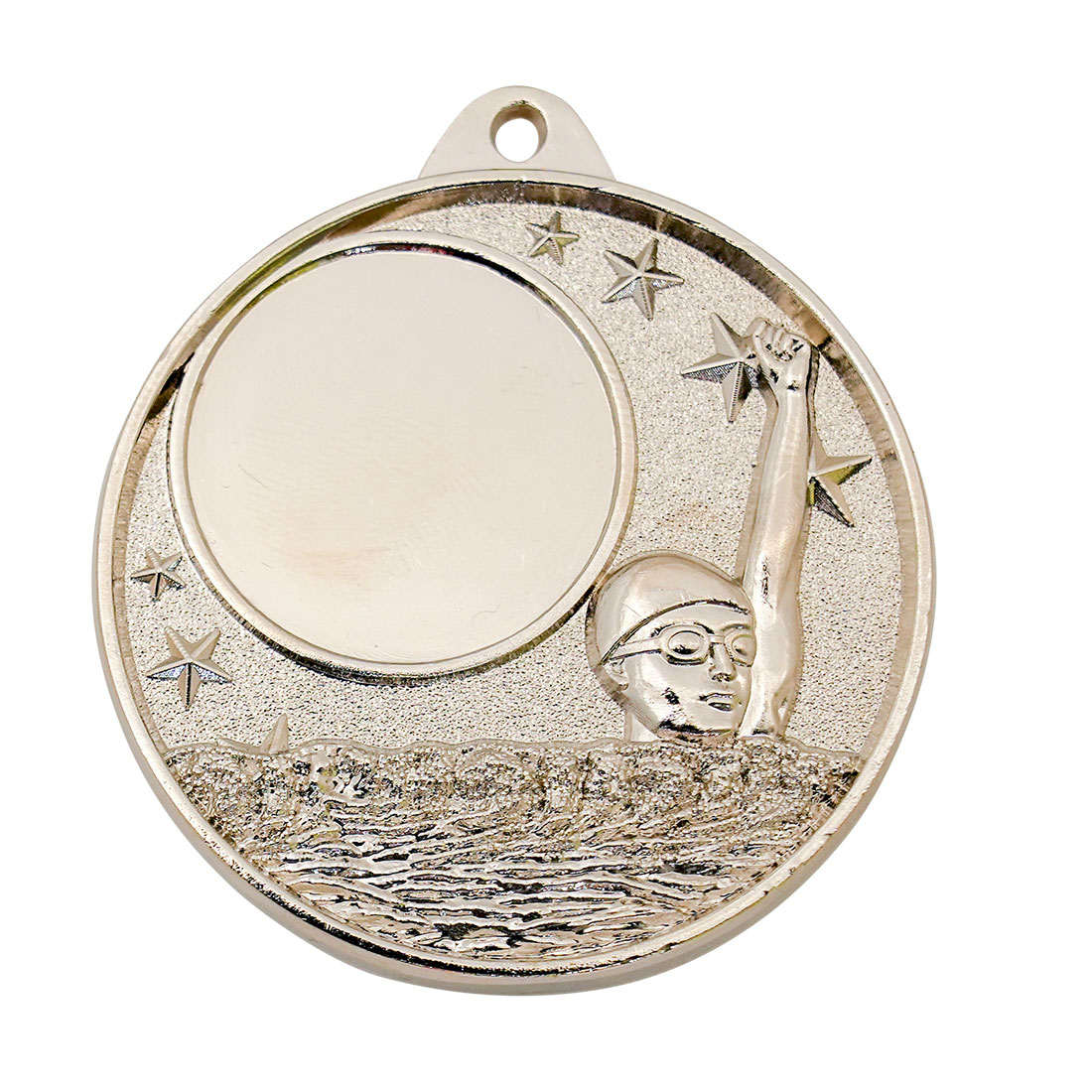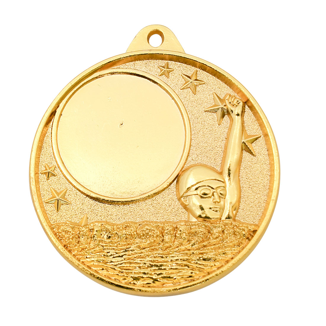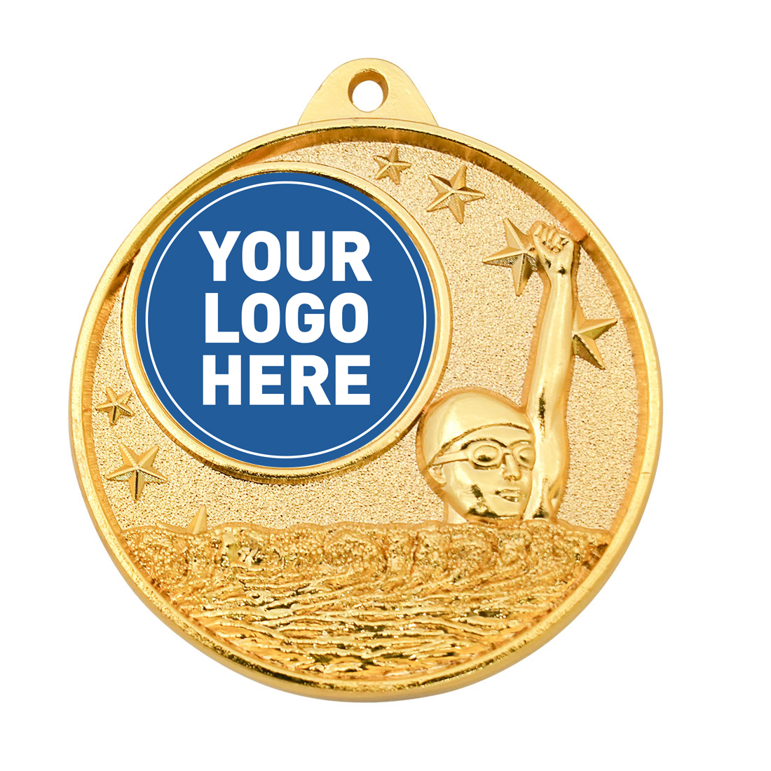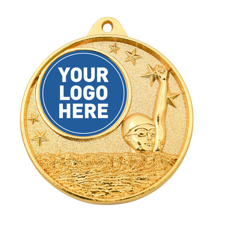 Celebrate swimming achievement with this professionally crafted medal, designed to meet the needs of any event where excellence in the pool is recognised. Featuring a distinctive hollow multi star motif and an image of a swimmer, this circular medal is available in gold, silver, and bronze finishes. Ideal for swimming presentations, this piece delivers both elegance and lasting recognition.
