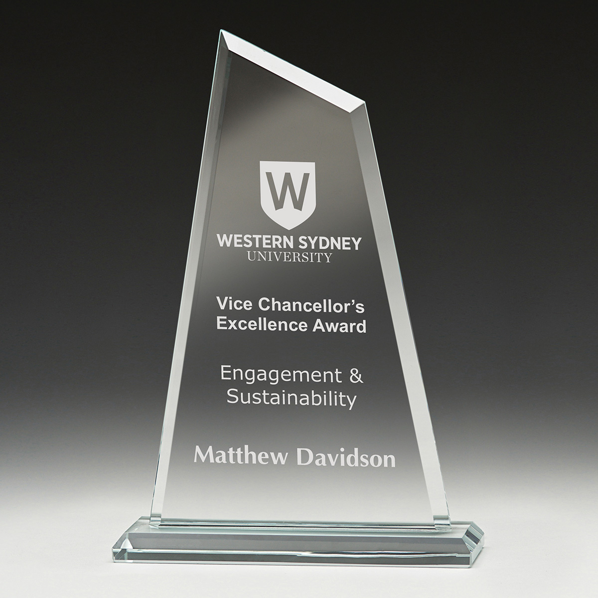 We use Superior Sandblast engraving or high-resolution full-colour printing to achieve striking results on our glass awards and trophies.