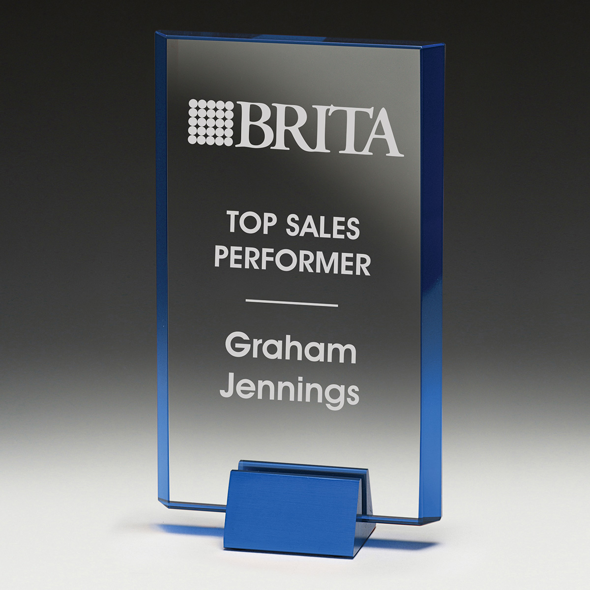We use Superior Sandblast engraving or high-resolution full-colour printing to achieve striking results on our glass awards and trophies.