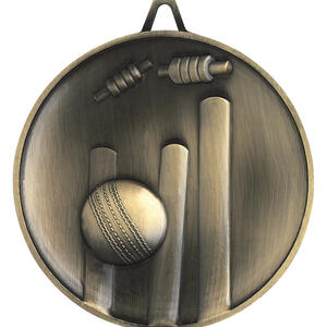 Crafted in gold toned metal, this cricket medal stands out with its solid feel and elegant finish. The circular design features detailed cricket stumps, bails, and a ball, capturing the spirit of the game. A reliable choice for recognising achievement in cricket, it offers a professional and memorable way to honour dedication on the field.
