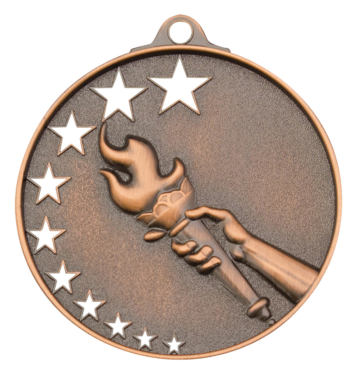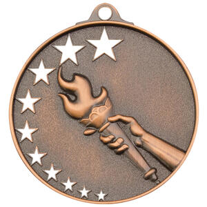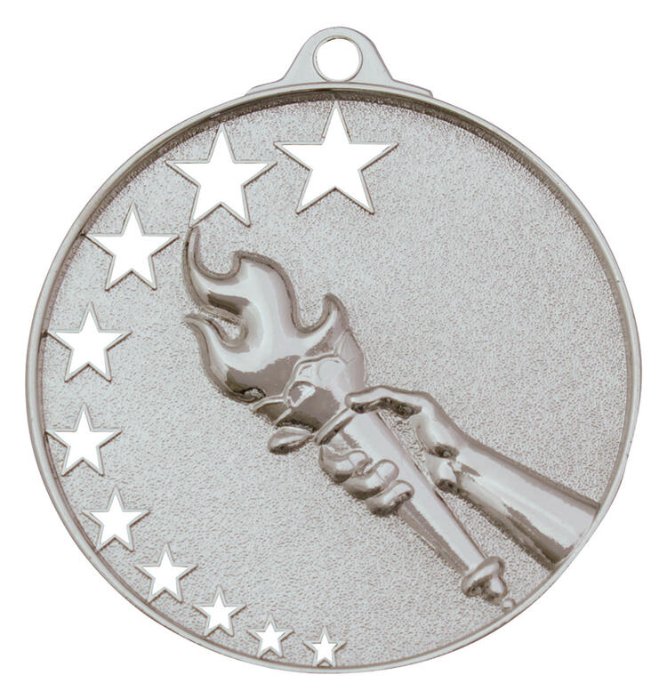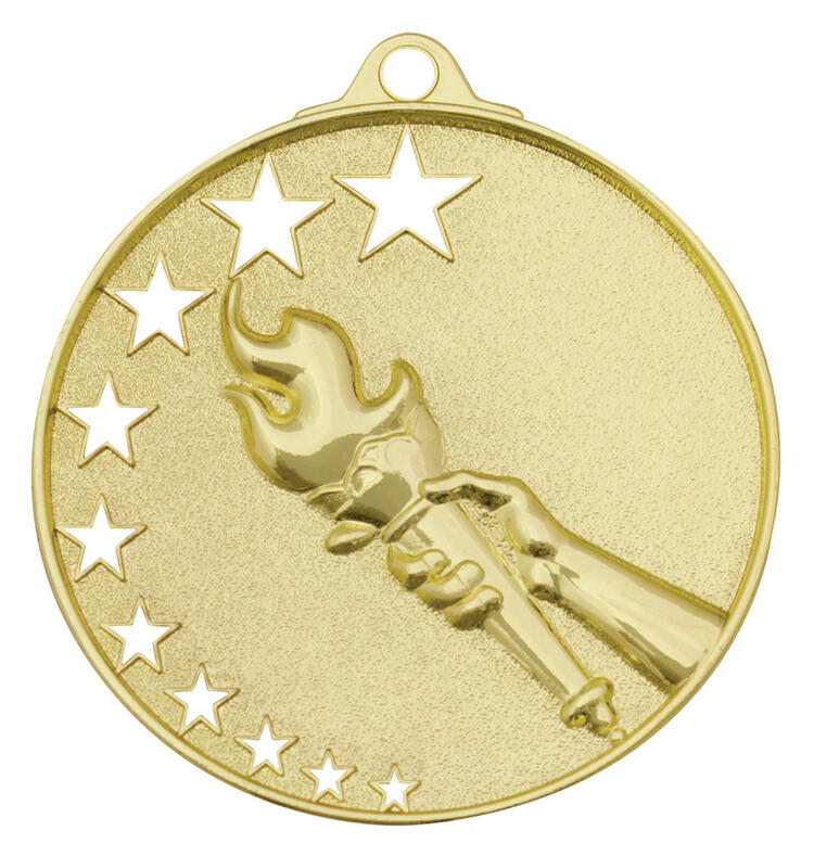 Celebrate achievement with this distinguished victory medal, crafted in durable metal and available in gold, silver, and bronze finishes. The circular design features a hand holding a torch, framed by a ring of stars that symbolise triumph and aspiration. Its timeless style makes it a trusted choice for general sports recognition across schools, clubs, and events.