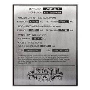 This method ensures the detail remains sharp and permanent, even under harsh conditions such as UV exposure, high temperatures, chemicals, and abrasion. The result is a compliance plate that will not fade or wear, delivering reliability for critical applications in automotive, marine, construction, mining, and industrial sectors.