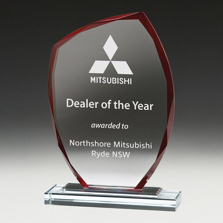 Glass trophies typically have a very slight green tinge, which can subtly affect the appearance of colour printing. In contrast, crystal trophies are completely clear.