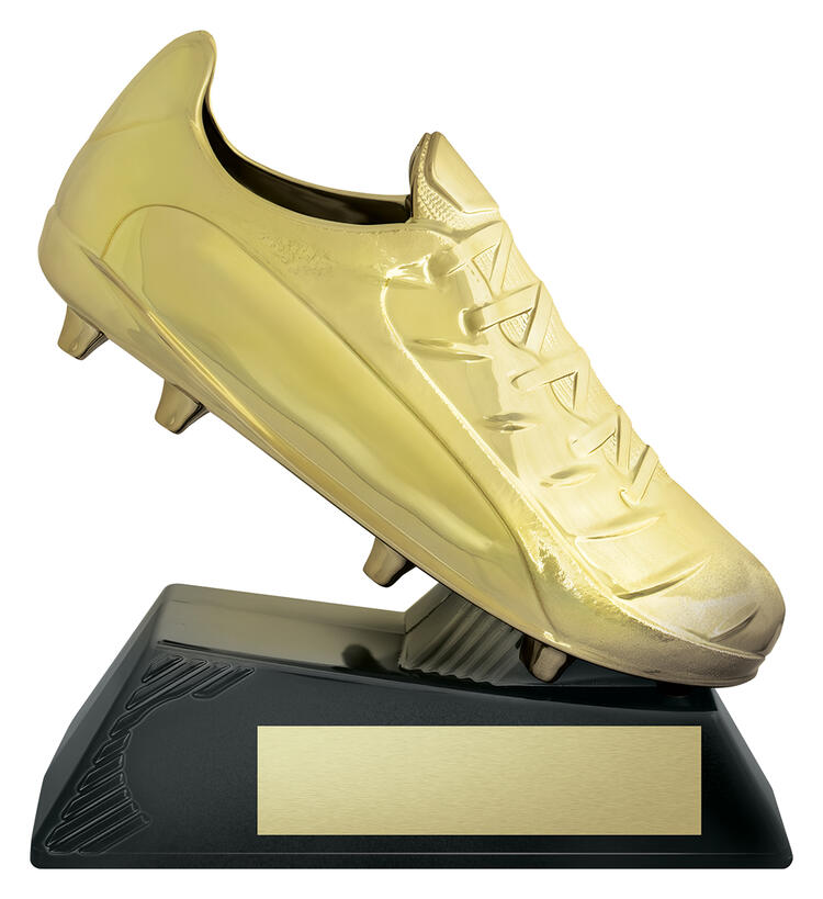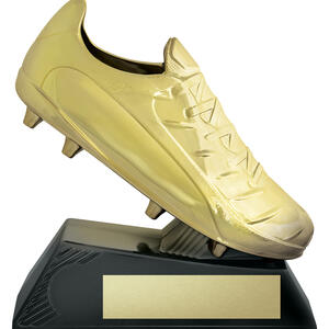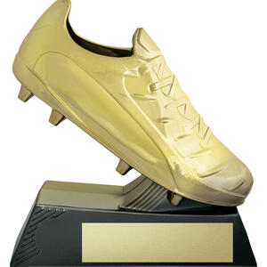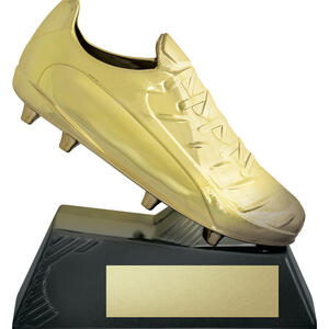 Crafted for standout sporting recognition, this boot shaped trophy showcases a detailed golden boot set atop a sturdy black rectangular base. The gold finish, enhanced with a hard shell, offers an elegant and durable presentation. Available in three sizes, it provides a professional and memorable way to celebrate rugby achievement.