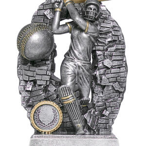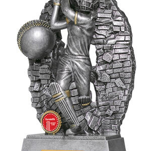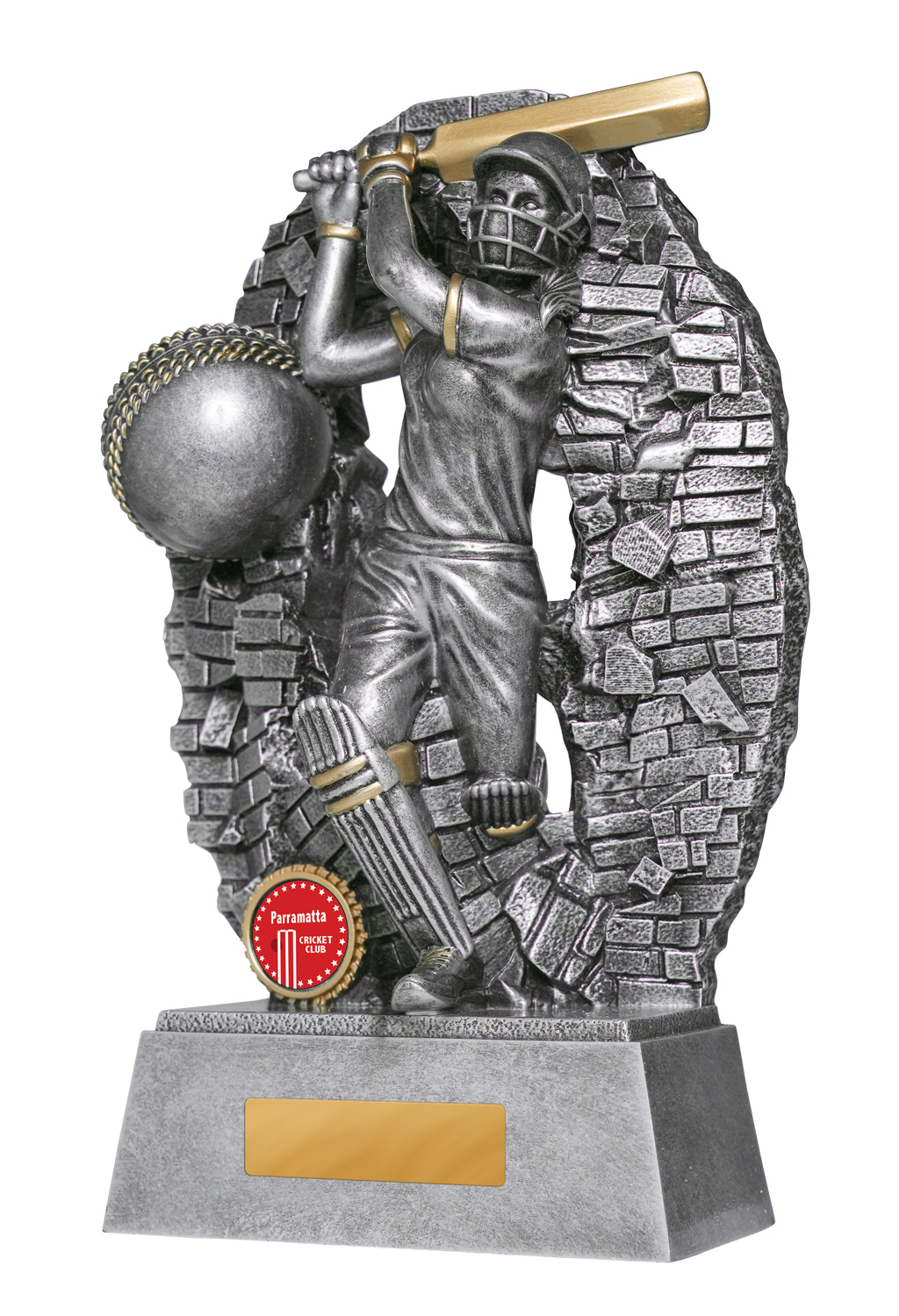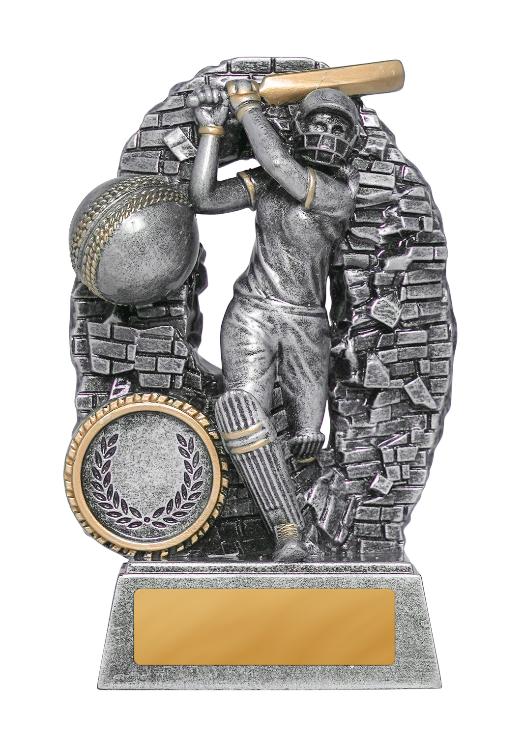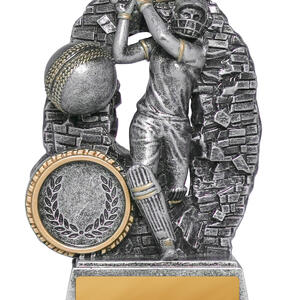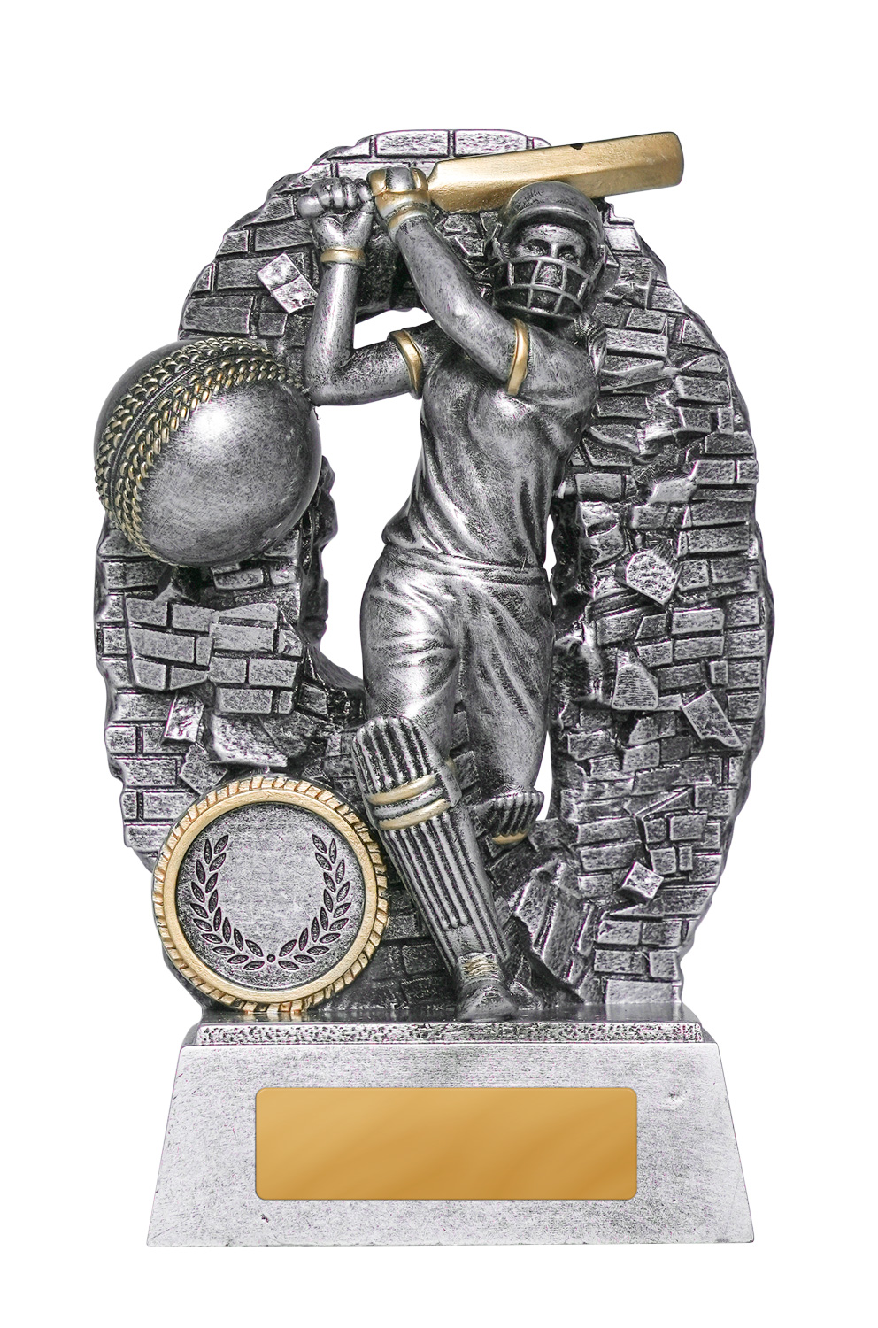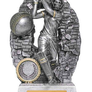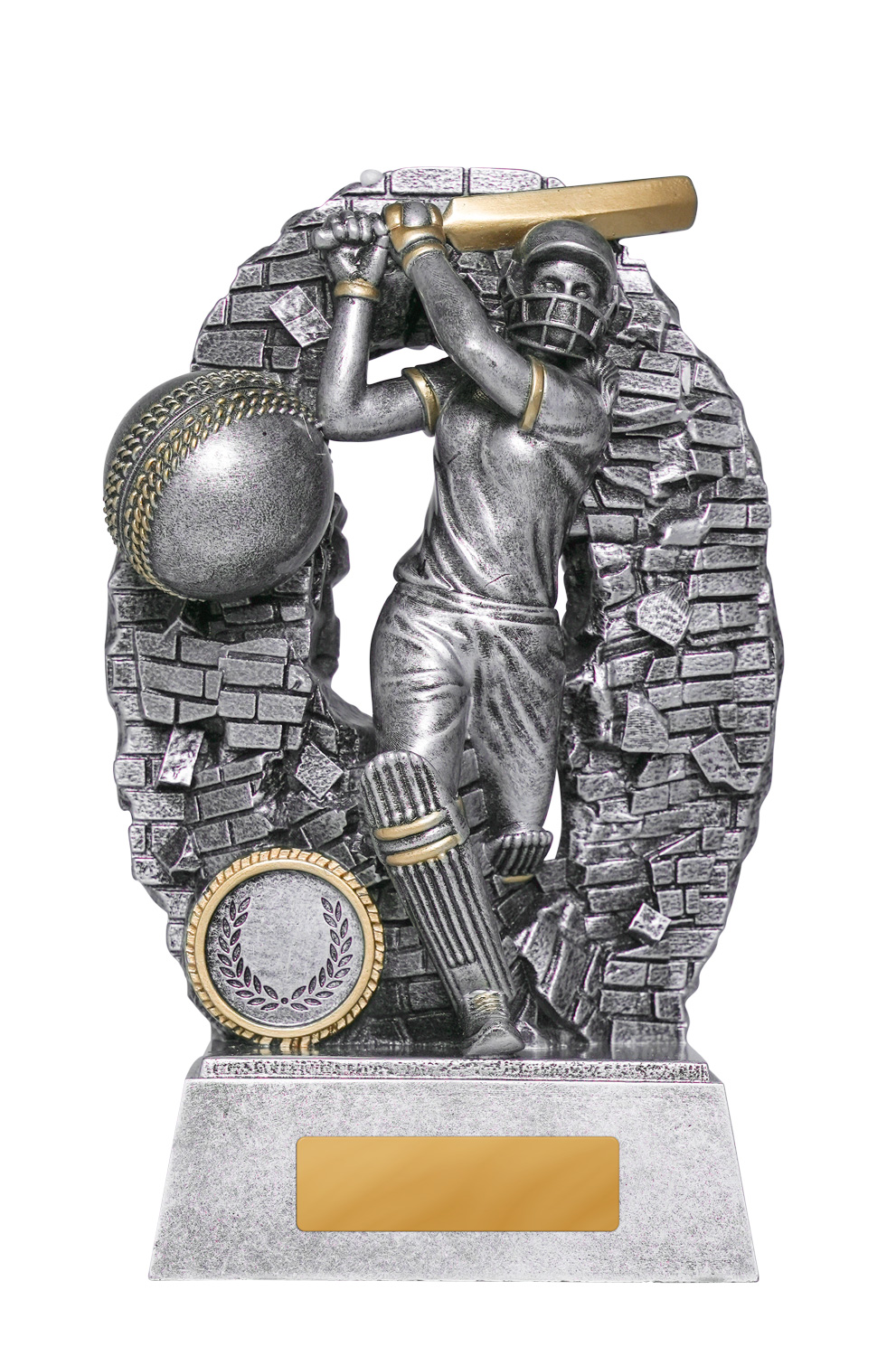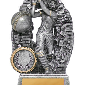 Celebrating individual skill and team spirit, this female cricket trophy from the Crash Through Series showcases a dynamic batsman figure in a confident stance. Crafted with a durable metallic finish in silver and gold, it features a cricket ball and laurel wreath for a polished, professional look. Available in five sizes, it's a versatile option for recognising achievement at every level in women's cricket.