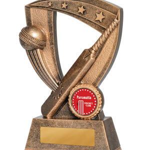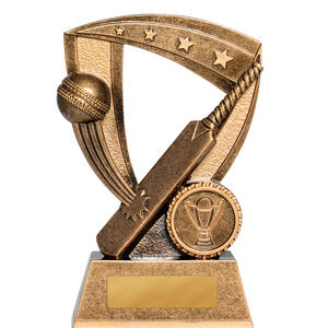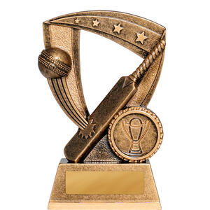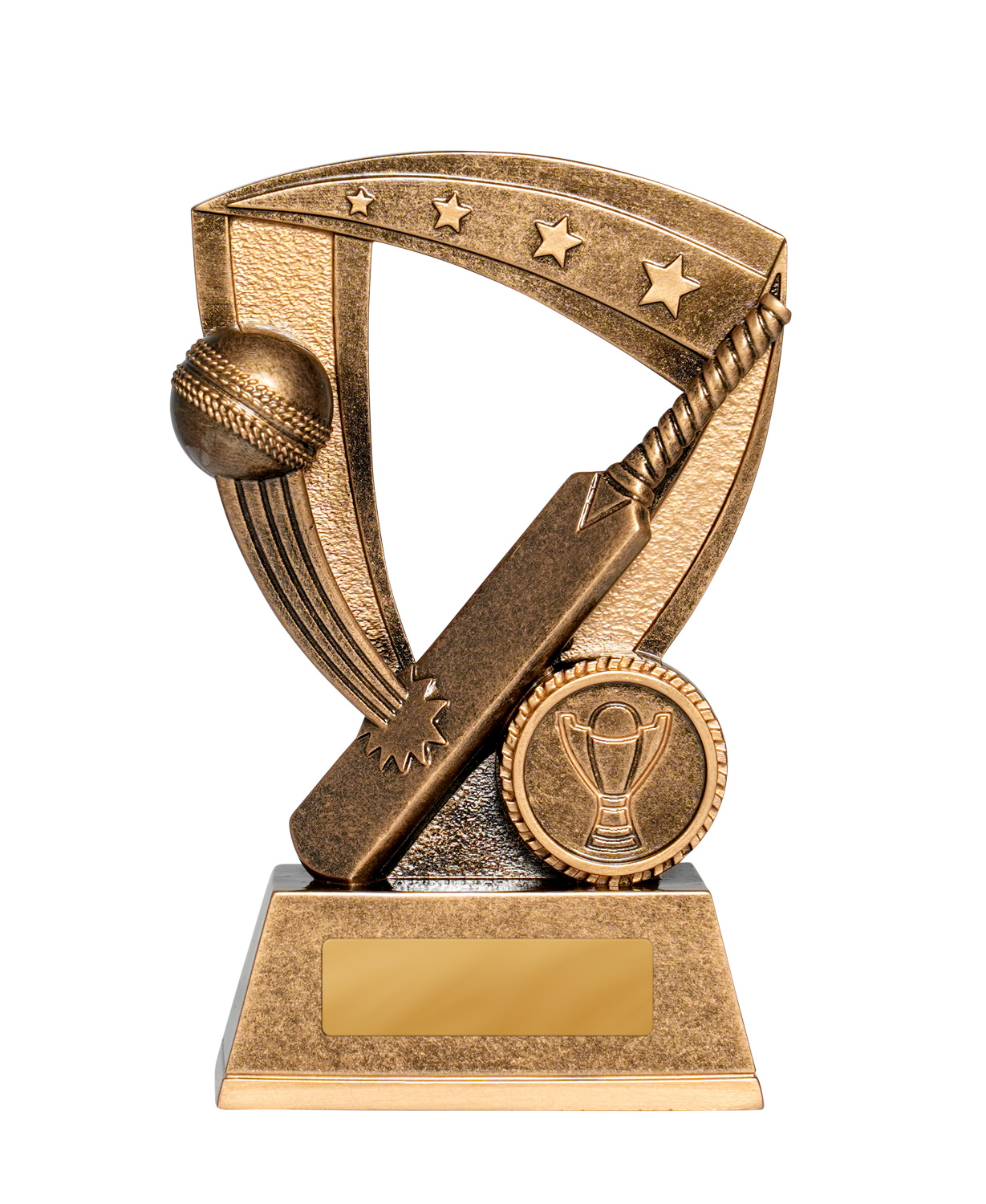 This cricket trophy features a bold cricket bat and ball design accented by a dynamic star motif, all set in a refined gold metallic finish. The sturdy construction offers durability while the vibrant 25mm centre provides space for personalisation, making it ideal for recognising individual or team achievement. An excellent choice for club, school, or community cricket events.