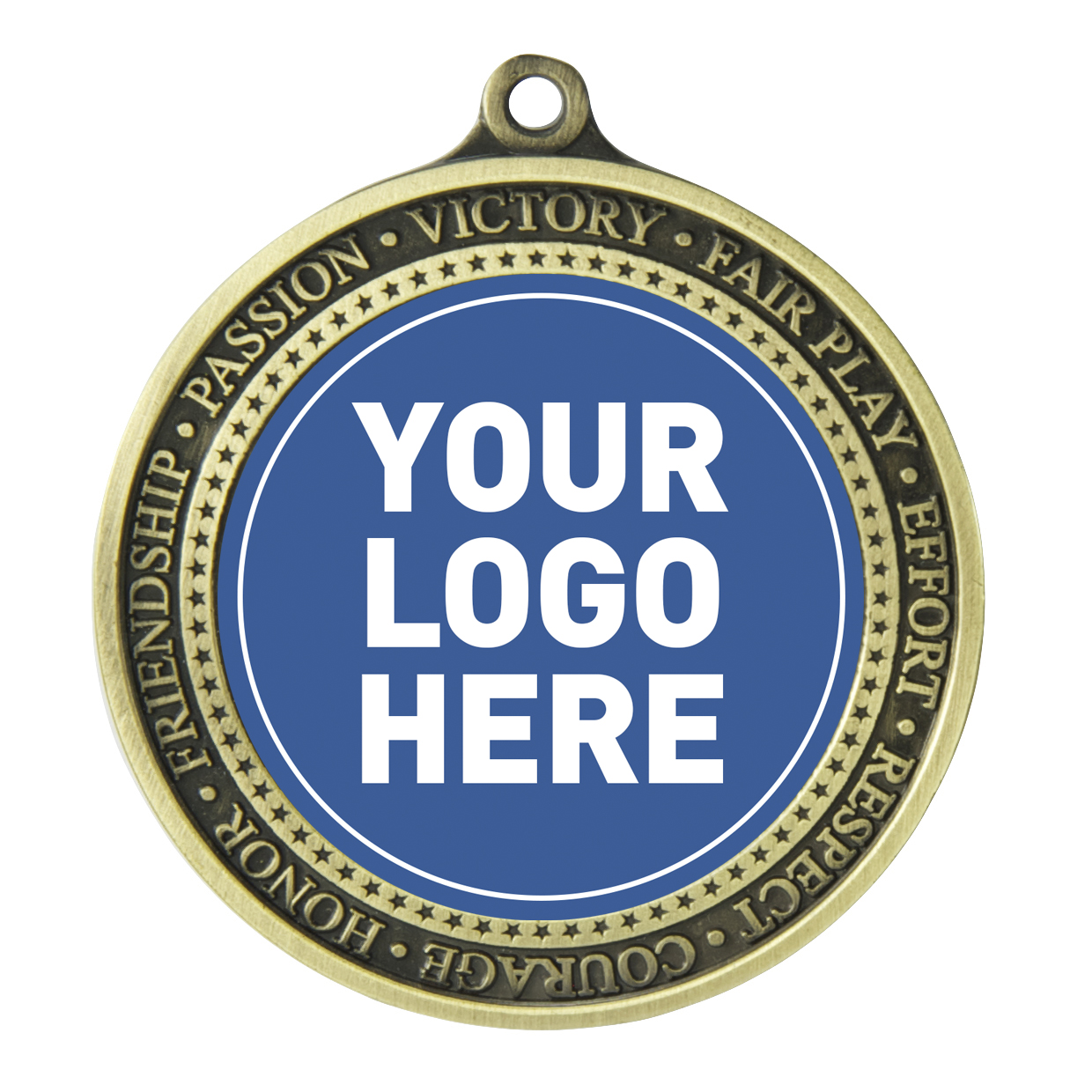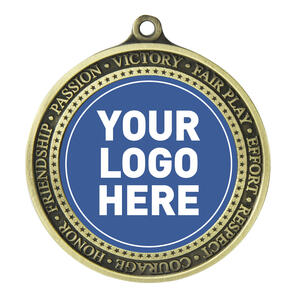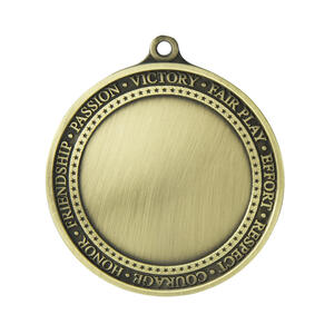 Crafted from metal in classic gold, silver, and bronze finishes, these 50mm insert medals provide a professional choice for sports recognition. The circular design features a practical loop for ribbon attachment and is accented by values such as 'Victory', 'Fair Play', and 'Effort' around the border. A reliable solution for celebrating achievement across a range of sporting events.