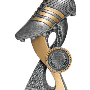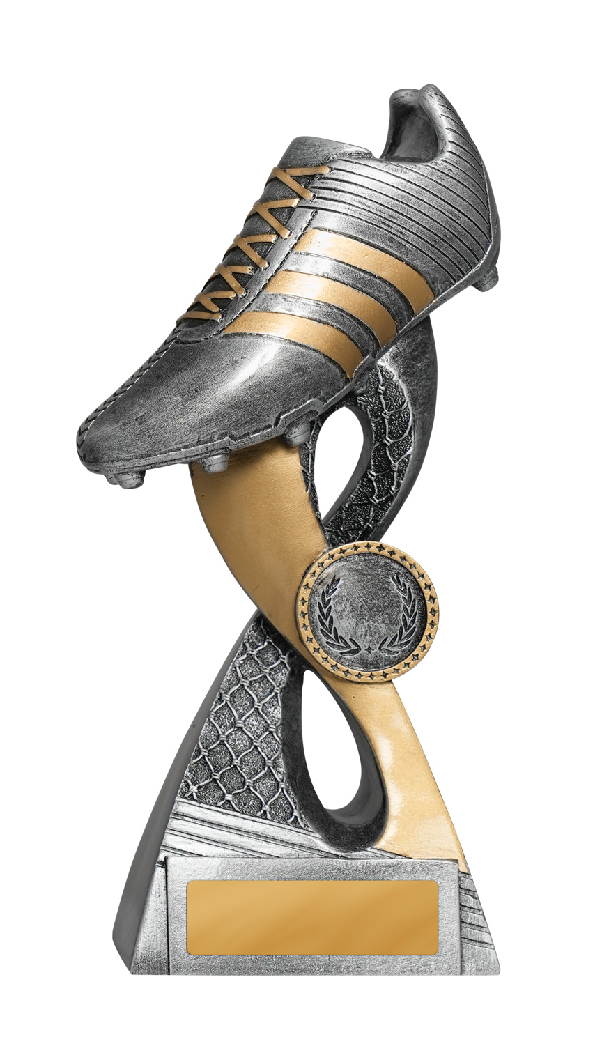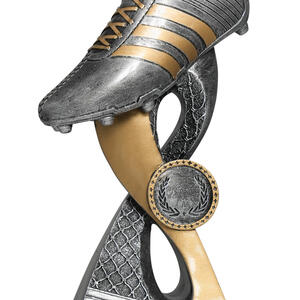 This football trophy blends a refined metallic finish with thoughtful design elements, including a net inspired pattern and a laurel wreath emblem. A football sits prominently on top, symbolising achievement in the sport. Ideal as a soccer award for teams and individuals, it celebrates success through professional craftsmanship and enduring quality.