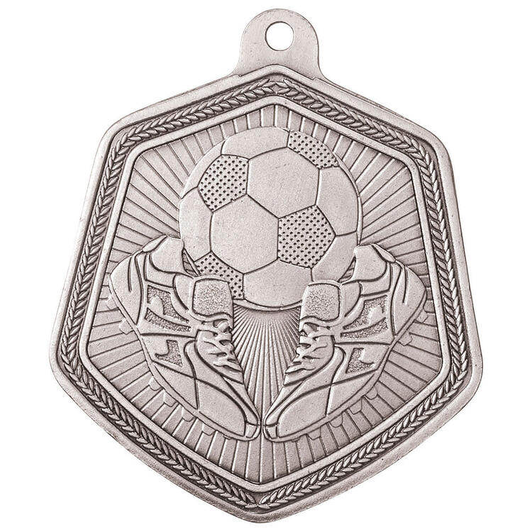 Crafted for memorable recognition, these pentagonal soccer medals stand out with a detailed soccer ball and shoes design. Available in gold, silver, and bronze, each medal features rounded edges and a practical loop for easy ribbon attachment.