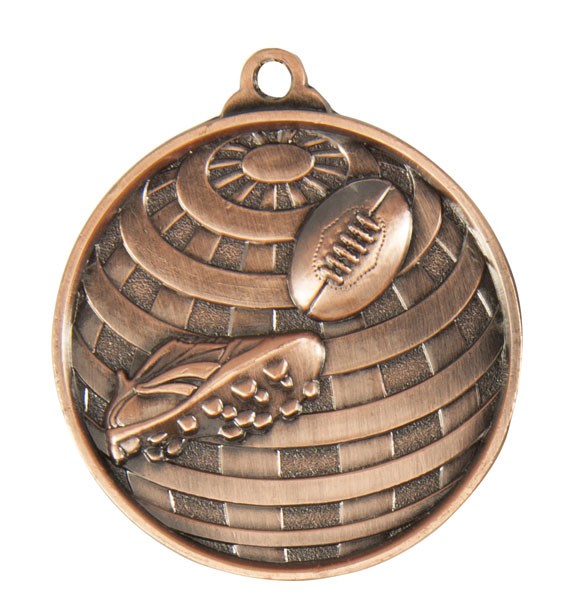 Celebrate sporting achievement with this expertly crafted medal from the aussie rules medals collection. Available in gold, silver, and bronze finishes, the circular medal is made from metal and showcases an embossed football and cleat design set against a textured backdrop.
