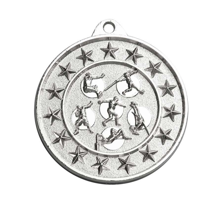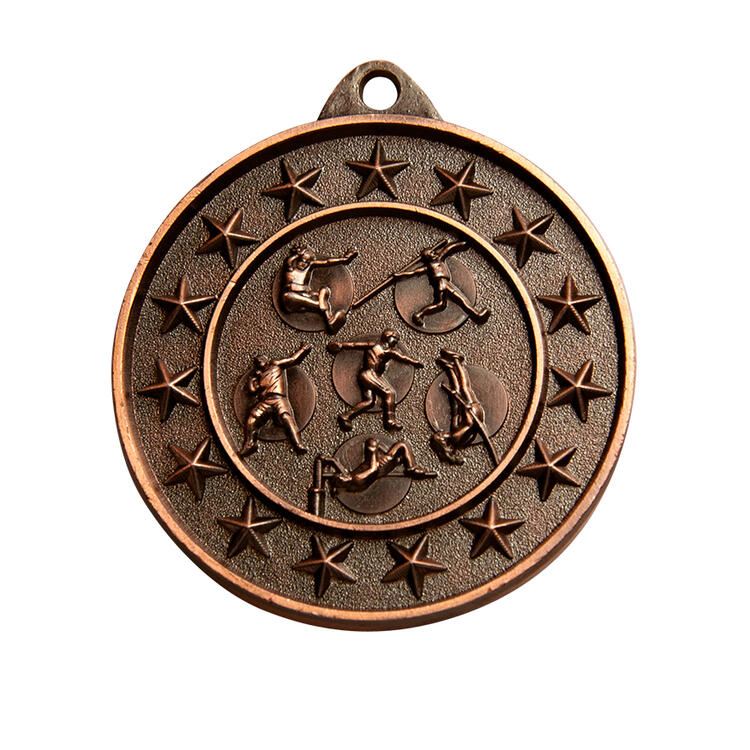This circular medal stands out with its eye catching cut out details and embossed athletes in action, framed by a constellation of stars. Available in gold, silver, and bronze, it delivers a memorable way to recognise achievement across athletics events. Crafted for durability and distinction, it is an excellent option for organisations seeking premium athletics medals.