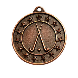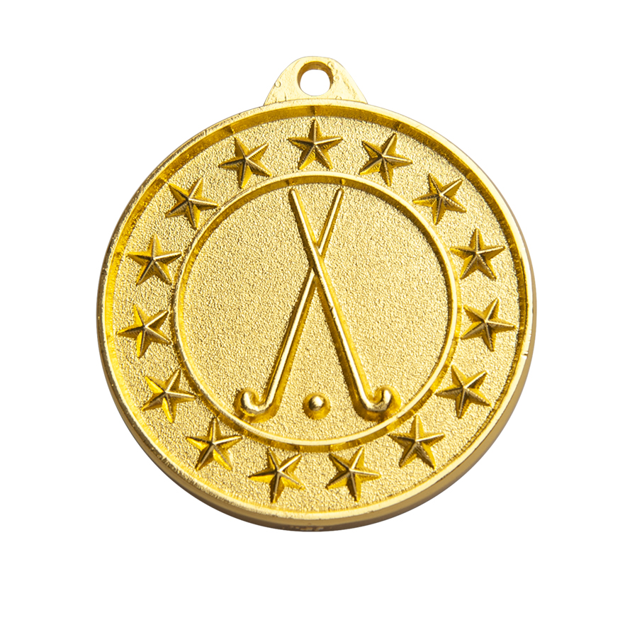 Celebrate sporting achievement with this circular hockey medal, crafted from metal and available in gold, silver, or bronze finishes. A colour insert highlights the detailed design of crossed hockey sticks and a ball, surrounded by stars for a memorable touch. Space for engraving on the reverse provides the opportunity for personal recognition, making these hockey medals a trusted choice for commemorating milestones in the sport.