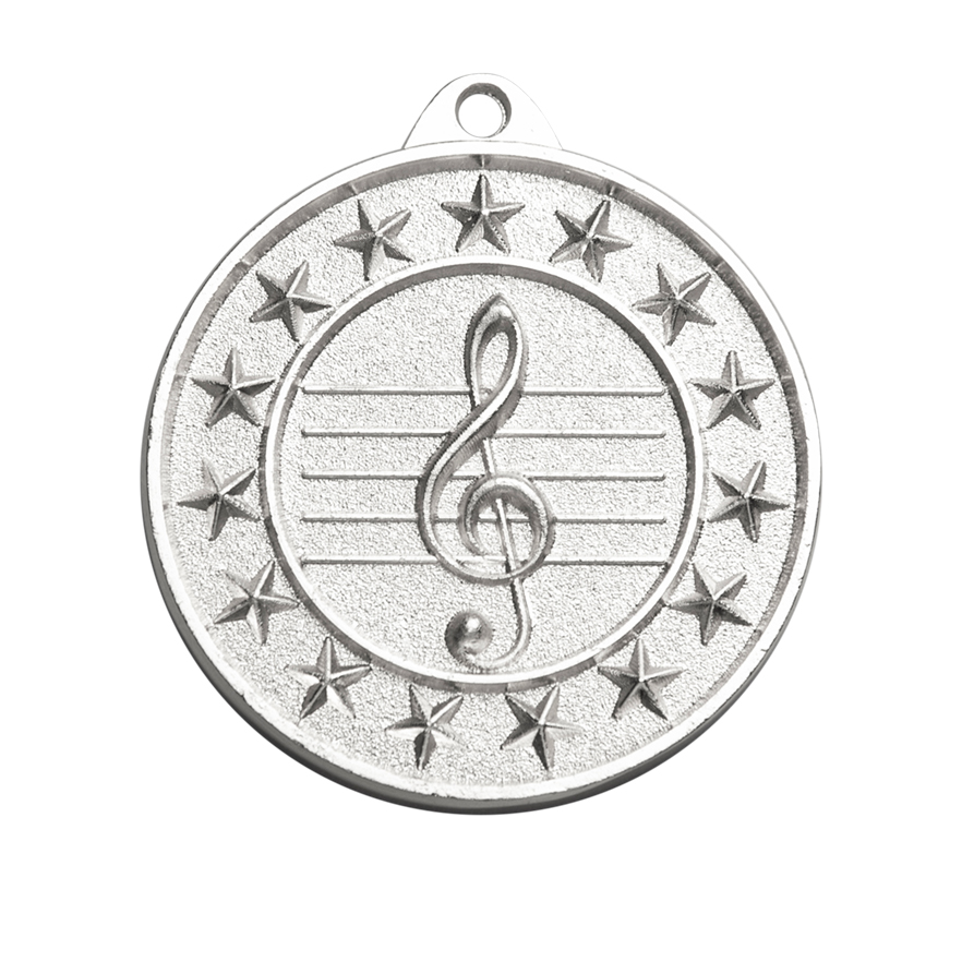 Crafted for distinction, this music medal features a metal finish in your choice of gold, silver, or bronze. The circular design is highlighted by an elegant treble clef and star motif, making it a fitting recognition for musical excellence. A convenient loop allows for easy hanging with a ribbon, perfect for commemorating standout performances.