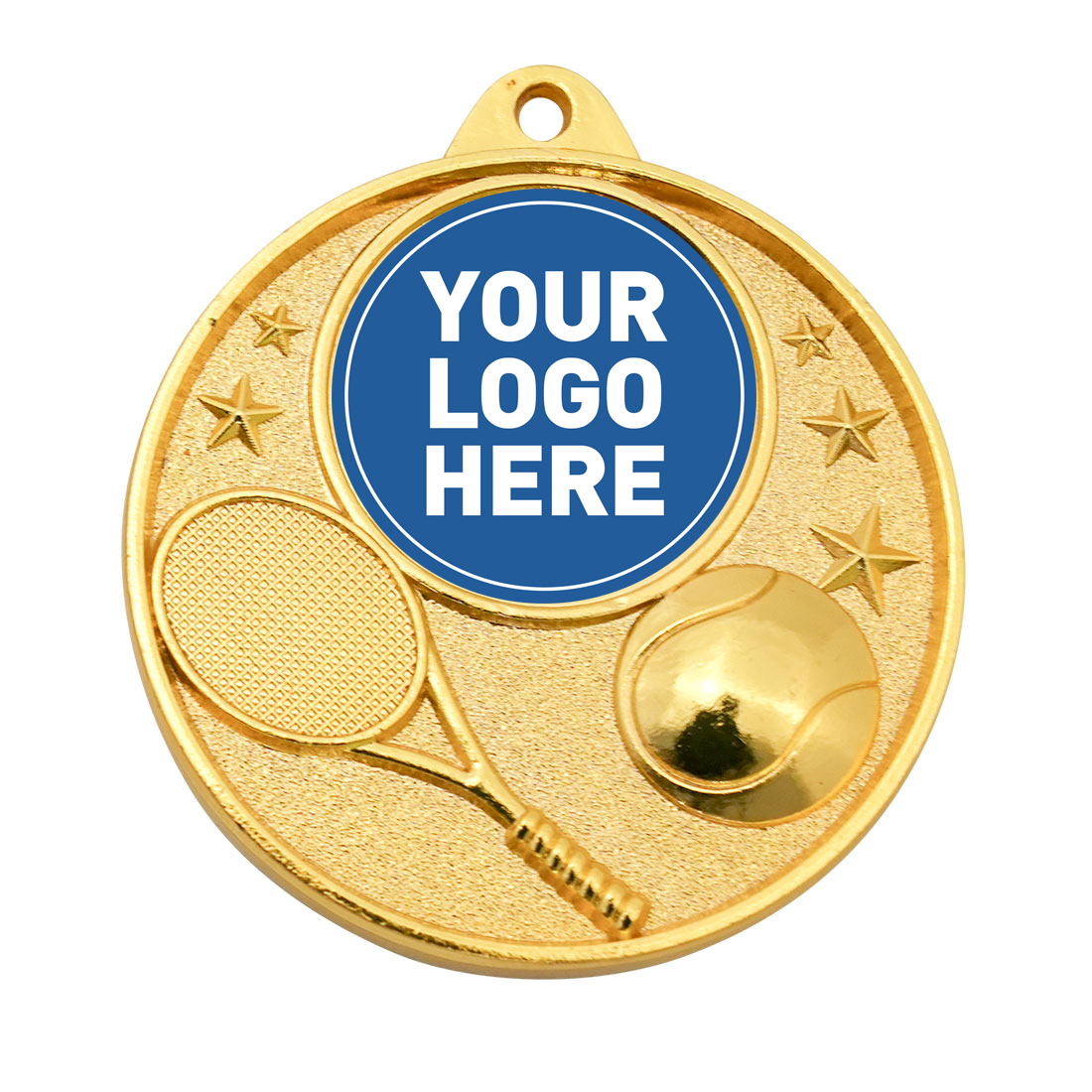 Celebrate tennis achievement with this Shooting Star Series medal, designed to honour outstanding performance on the court. Available in gold, silver, and bronze finishes, its circular form features a detailed tennis racket and ball, framed by dynamic star motifs. A prominent 25mm centre ensures a professional presentation, making these tennis medals a reliable choice for any level of competition.