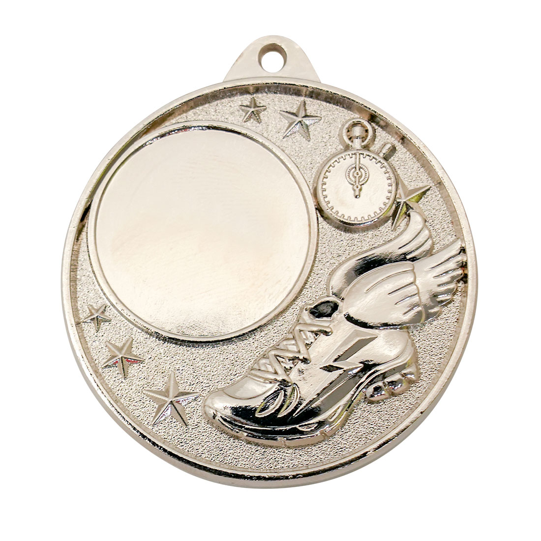 Crafted in metal with a refined circular shape, this athletics medal comes in gold, silver, and bronze finishes to suit every level of achievement. The design features a precise stopwatch, a winged shoe, and star accents, symbolising speed and excellence in track and field. A practical loop ensures easy ribbon attachment, making it an ideal choice for presentations.