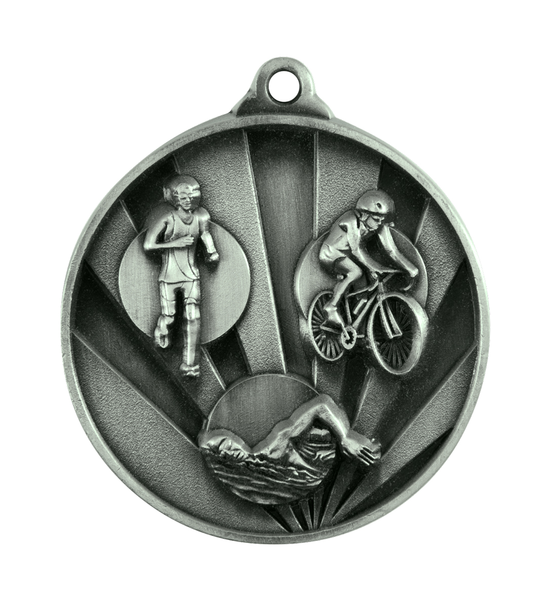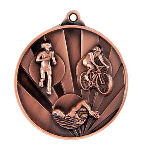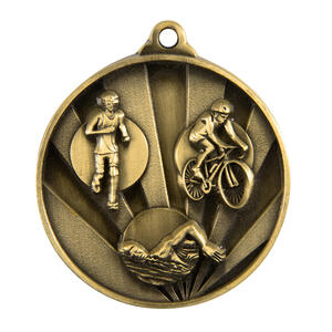 Crafted for achievement, this 50mm triathlon medal features a circular design with a practical loop for easy presentation. Embossed illustrations of a runner, cyclist, and swimmer capture the essence of the sport, while the choice of gold, silver, or bronze finishes ensures a professional recognition of performance across all levels.