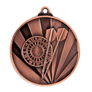 Crafted in metal with a vibrant dartboard and darts motif, this 50mm medal offers a distinguished way to celebrate achievement in darts. Available in gold, silver, and bronze finishes, each medal features a colour insert and a secure loop for attaching a ribbon. Designed for darts tournament medals, it includes space on the back for custom personalisation, ensuring every recognition is both meaningful and memorable.