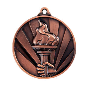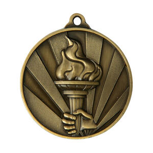 Crafted from quality metal in a sleek 50mm circular profile, this Sunrise Medal Victory Torch is a standout in sports medals. Available in gold, silver and bronze finishes, it presents a striking torch and flame motif, accented by a hand in mid-lift. The classic loop makes for easy ribbon attachment, making it suitable for a range of sporting achievements.