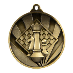 This 50mm medal, available in gold, silver and bronze finishes, celebrates chess achievement with a sophisticated design. The front features detailed chess pieces, a king, knight, and pawn set against a checkered backdrop, capturing the essence of the game. Ideal for schools, clubs, and tournaments, these chess medals offer a memorable and professional way to recognise skill and strategy.