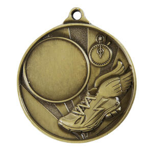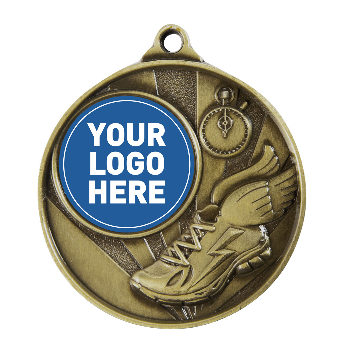 Crafted from metal, this gold medal from the Sunrise series is designed for athletics medals presentations. The detailed centre showcases a stopwatch, winged running shoe, and track illustration, symbolising achievement and precision in track events. Available in 52mm size, it offers a classic and reliable solution for recognising standout performances in athletics.
