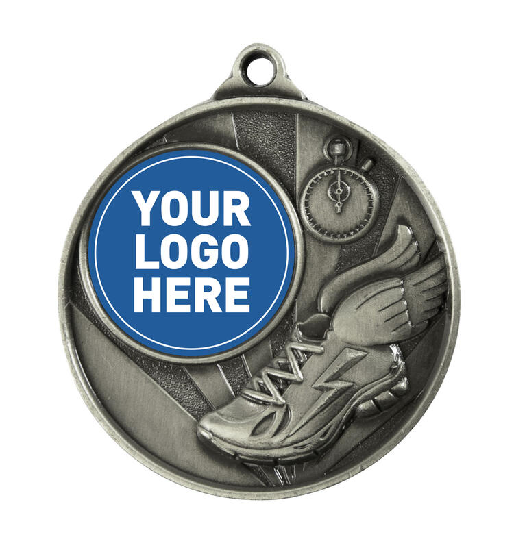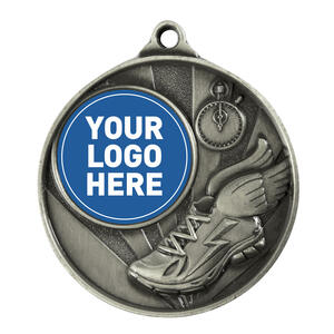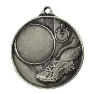 Crafted in silver toned metal, this circular athletics medal features detailed stopwatch and winged shoe motifs, representing the dual qualities of speed and accurate timing. With a 50mm diameter and a 25mm centre, it offers a professional and durable solution for recognising achievement in track and field events.