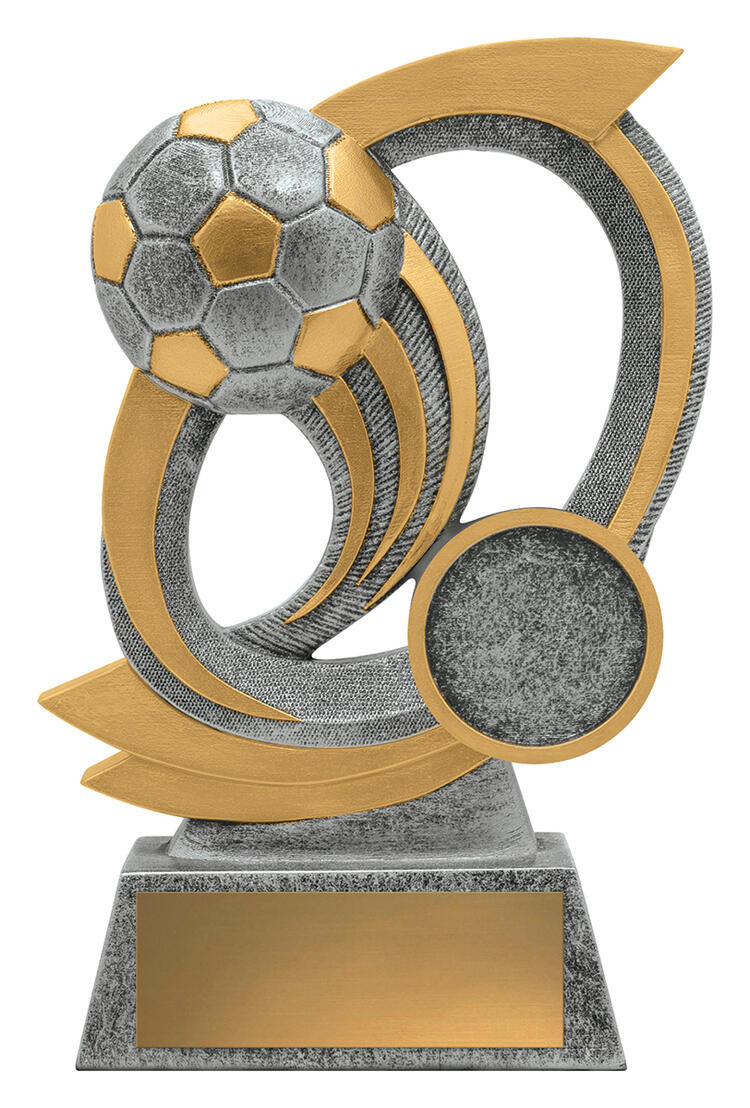 This abstract football trophy offers a striking tribute to achievement, featuring a dynamic football motif in elegant silver and gold. Its bold shape and circular base deliver a contemporary look suited to any celebration. A refined choice for those seeking football trophies that blend quality, style, and professional recognition.