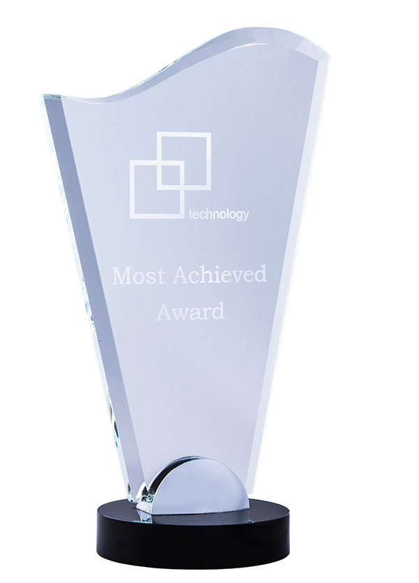 We use Superior Sandblast engraving or high-resolution full-colour printing to achieve striking results on our glass awards and trophies.