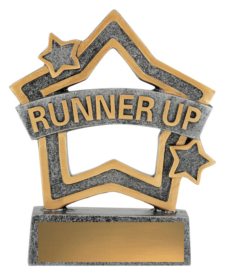 Celebrate success with this Runner Up resin trophy featuring a bold star design and antique gold and silver finish. Perfect for recognising second place achievements in any sport or event.