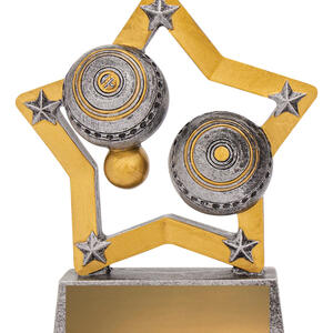 Eye catching star-shaped lawn bowls trophy with raised bowls and jack detail. Finished in silver and gold, itÂ’s perfect for player of the match awards or participation recognition.