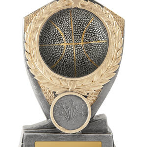Celebrate basketball achievement with a basketball trophy that blends refined style and timeless symbolism. Crafted from durable resin, its shield like design features a circular basketball motif framed by a laurel wreath and accented with a star emblem.