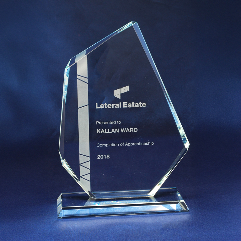 Glass trophies typically have a very slight green tinge, which can subtly affect the appearance of colour printing. In contrast, crystal trophies are completely clear.