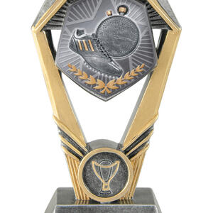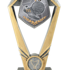 Striking a balance between modern design and classic symbolism, this athletics trophy features a geometric hexagonal top on a sturdy rectangular base. Crafted from resin, it showcases a stopwatch, running shoe, and laurel wreath motif. It offers a professional and memorable way to honour athletic achievement.