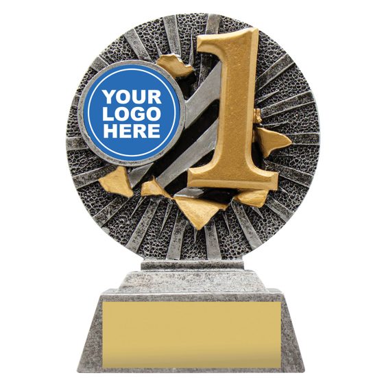 A striking silver and gold resin award showcasing a large number 1 design - perfect for recognising first place achievements. The centre insert can be customised with your club logo or sport image.
