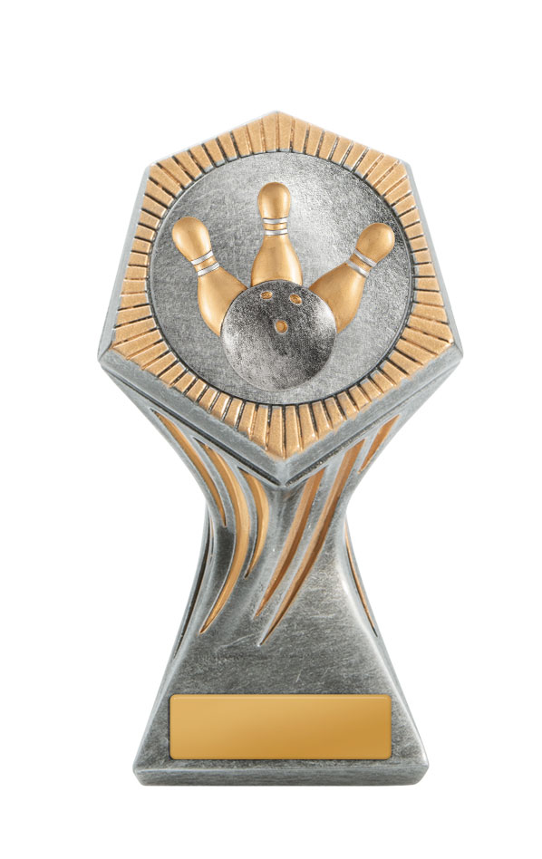 A modern take on tenpin bowling trophies, this Gladiator Series award pairs a distinctive hexagonal top with a tapered base for a sleek, contemporary silhouette. It features an eye catching bowling ball and pins design. Crafted for lasting quality, this trophy is a fitting recognition piece for outstanding achievement in tenpin bowling.