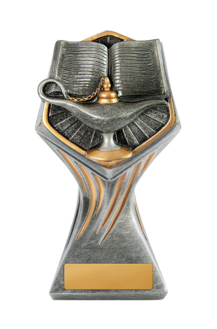 Crafted with a distinguished hexagonal top and a flared base, this resin award is available in a silver and gold finish. The open book and lamp motif, highlighted by a refined metallic sheen, symbolises intellectual achievement, making this academic excellence award a reliable choice for celebrating scholarly success with elegance and precision.