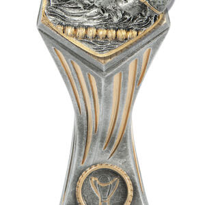 This swimming trophy features a dynamic male swimmer in a backstroke position, elegantly finished in silver and gold tones. Crafted from durable resin, it stands on a decorative base that leaves space for personalisation. Designed to recognise achievement in swimming, this award adds a refined touch to any event or presentation.