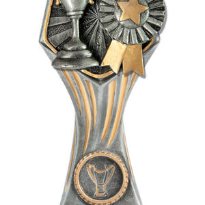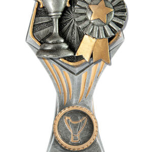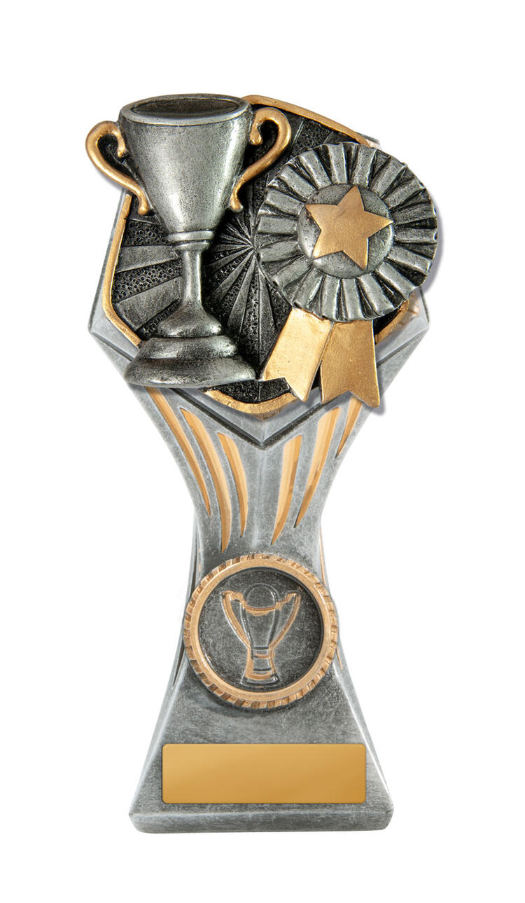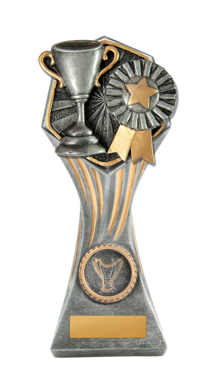 This versatile trophy cup delivers a professional finish in a choice of striking colour combinations, including silver with black, blue, gold, green, red, purple, or pink accents. Designed with a flared cup and a robust base, it stands out as both durable and elegant. It features a decorative design with a engraving plate suitable for laser engraving, making it a trusted choice for a broad range of sports trophies and achievement recognition.