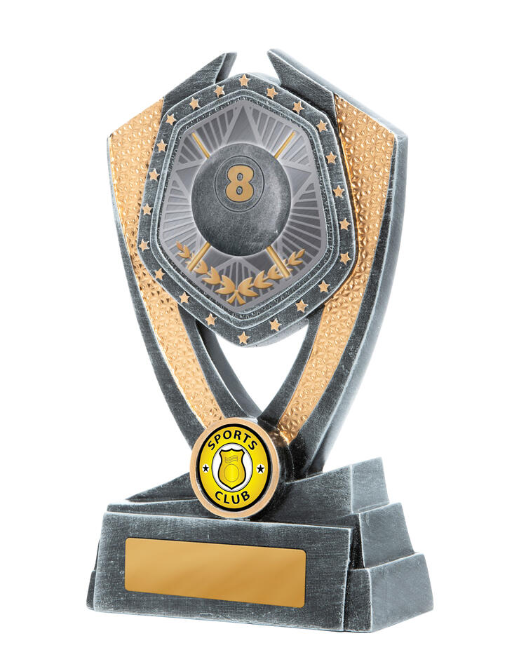 Designed for dance awards, this contemporary trophy cup presents a dynamic conical silhouette with decorative cutouts and prominent star motifs. The metallic upper section, available in vibrant blue, green, gold, and pink, is paired with a black base for a refined finish. Offering personalisation, it is an ideal choice for recognising dance achievement in a memorable and professional way.