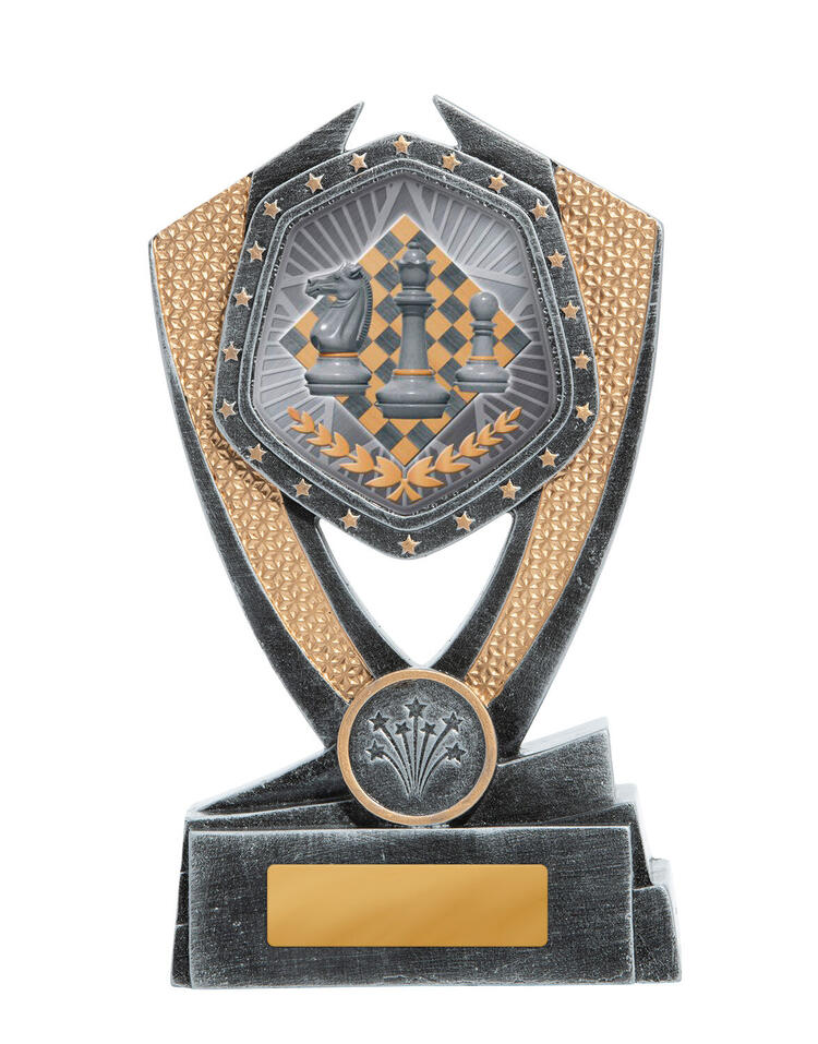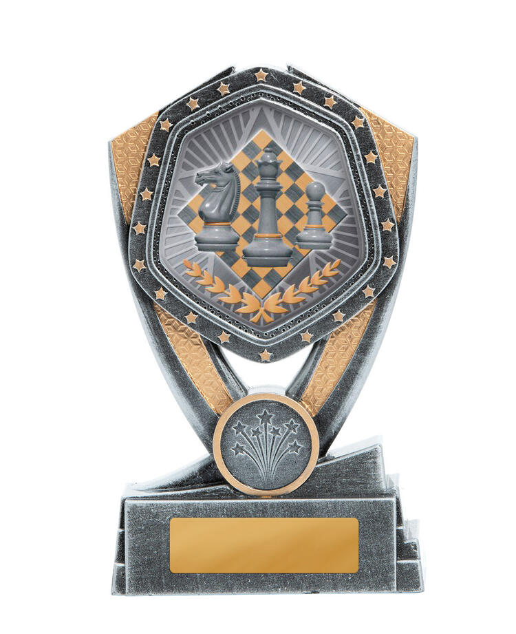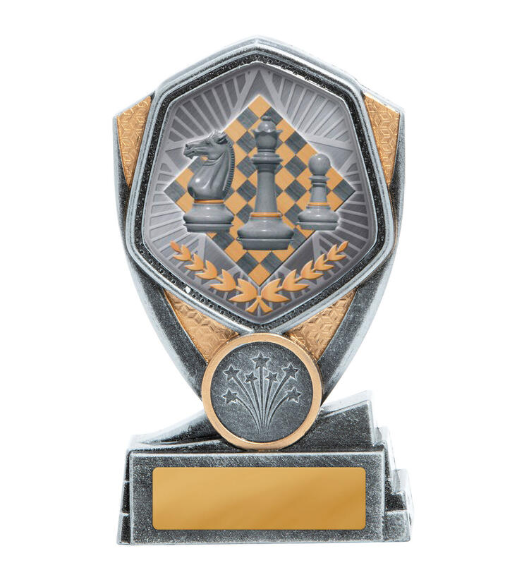 The Mini Chess Trophy offers a compact design with a bright gold finish and detailed chess motif. A budget-friendly and stylish option for recognising all participants and developing players.
