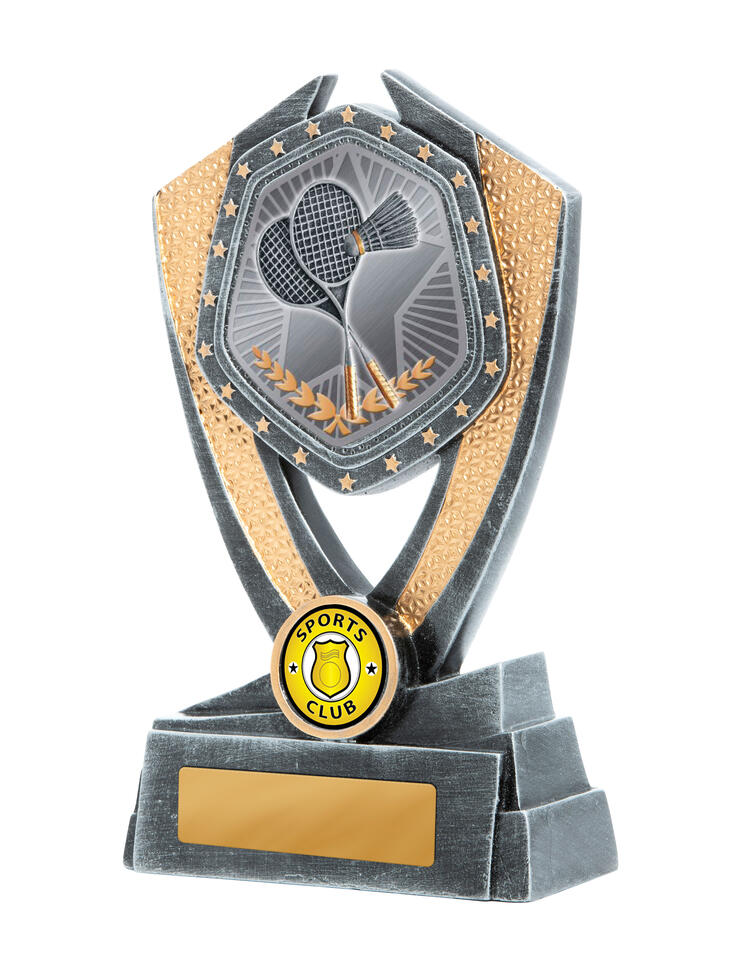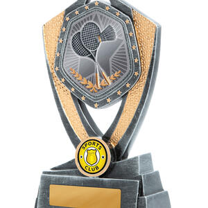 Designed for dance awards, this contemporary trophy cup presents a dynamic conical silhouette with decorative cutouts and prominent star motifs. The metallic upper section, available in vibrant blue, green, gold, and pink, is paired with a black base for a refined finish. Offering personalisation, it is an ideal choice for recognising dance achievement in a memorable and professional way.