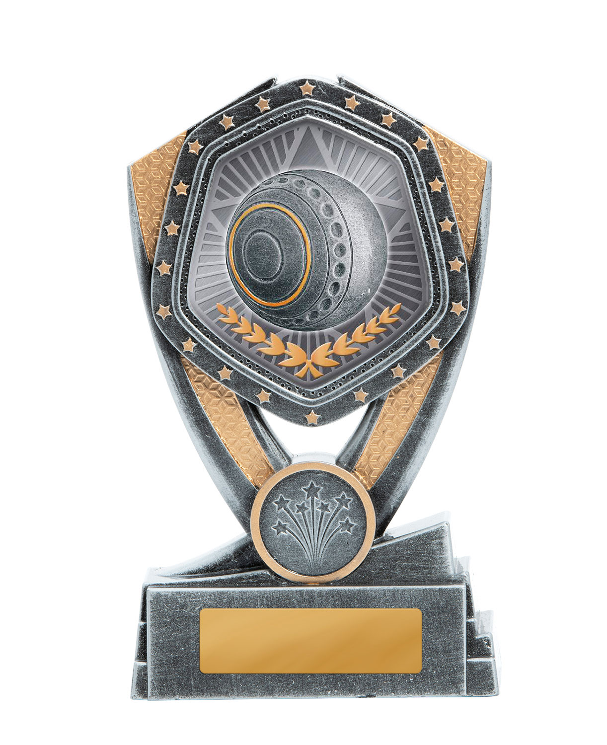 Designed for dance awards, this contemporary trophy cup presents a dynamic conical silhouette with decorative cutouts and prominent star motifs. The metallic upper section, available in vibrant blue, green, gold, and pink, is paired with a black base for a refined finish. Offering personalisation, it is an ideal choice for recognising dance achievement in a memorable and professional way.