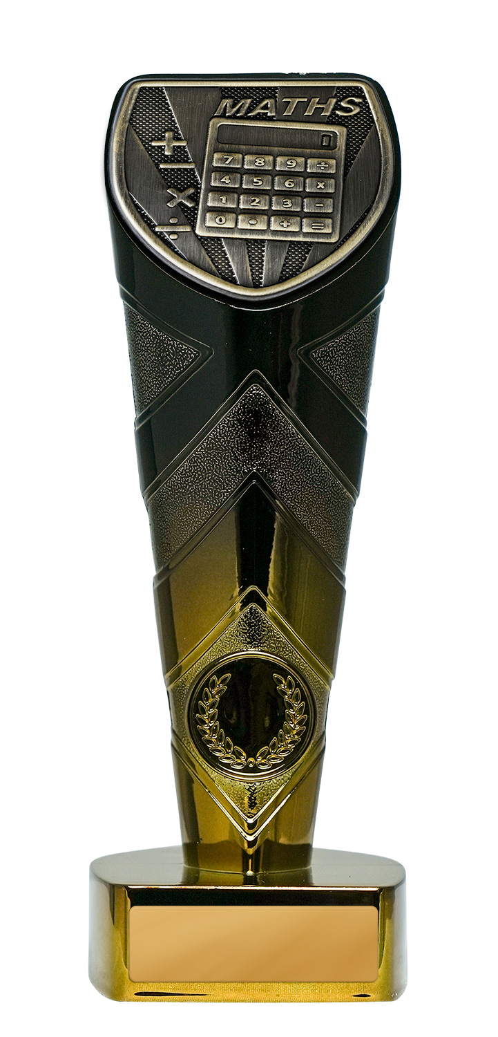 Celebrate excellence in mathematics with a maths trophy that blends precision craftsmanship and modern design. This education award features a striking black and gold colour palette, with a sturdy base and an elegant shield shaped top. Detailed with a calculator and mathematical symbols, it offers a professional and memorable way to honour academic success in mathematics.