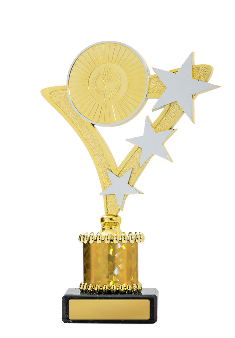 Available in a spectrum of vibrant colours, this trophy cup from the Dance Cups collection is crafted for memorable recognition. Its gold toned centre and ascending trio of stars stand out against a sleek metallic finish, conveying achievement and prestige. The stable base and versatile design make it ideal for sports, corporate, or school celebrations.