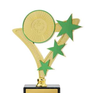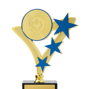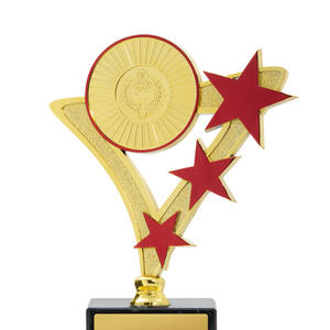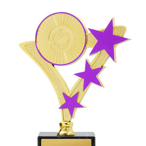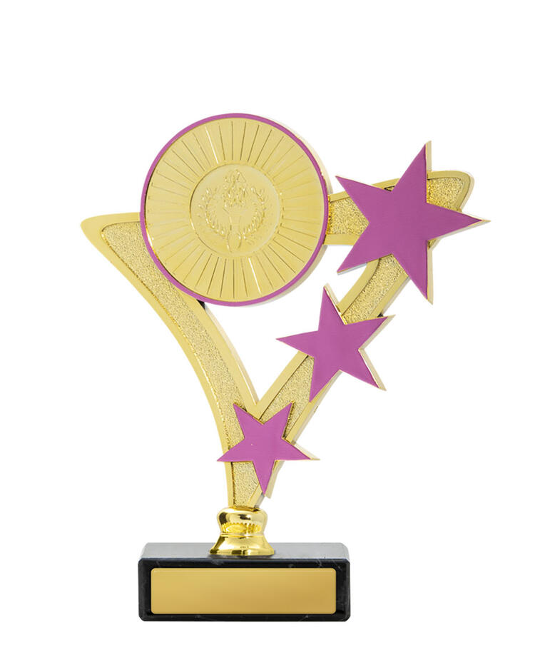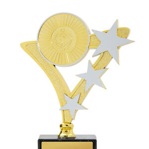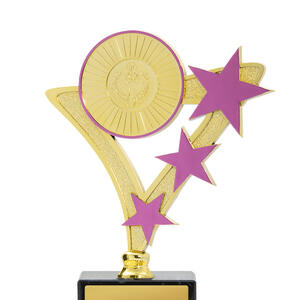 Showcasing a striking multi level design, this dance cups trophy cup features a circular logo and three sculpted stars on a base. The blend of plastic and metal ensures both quality and durability, while a black base with gold engraving plate offers custom recognition. Available in a range of vivid star colours, it provides a memorable way to celebrate achievement across any event.