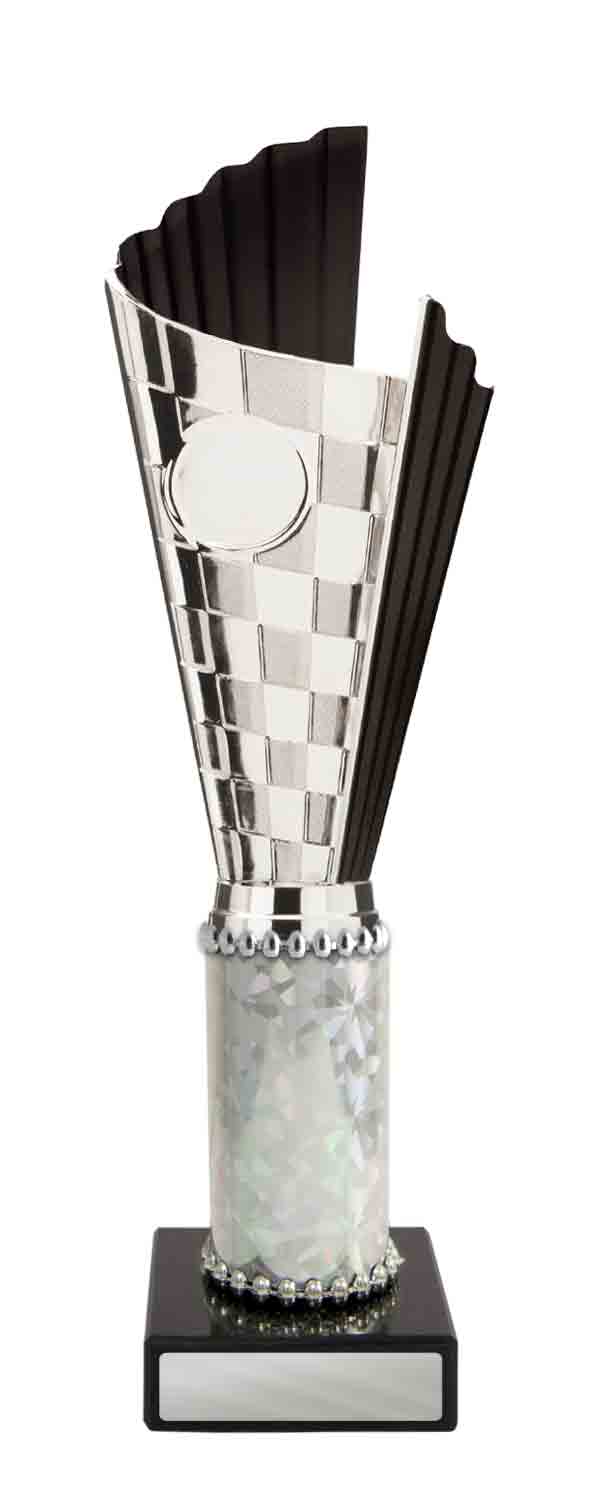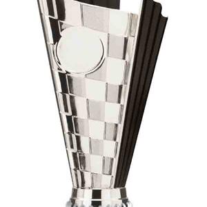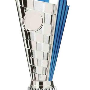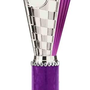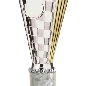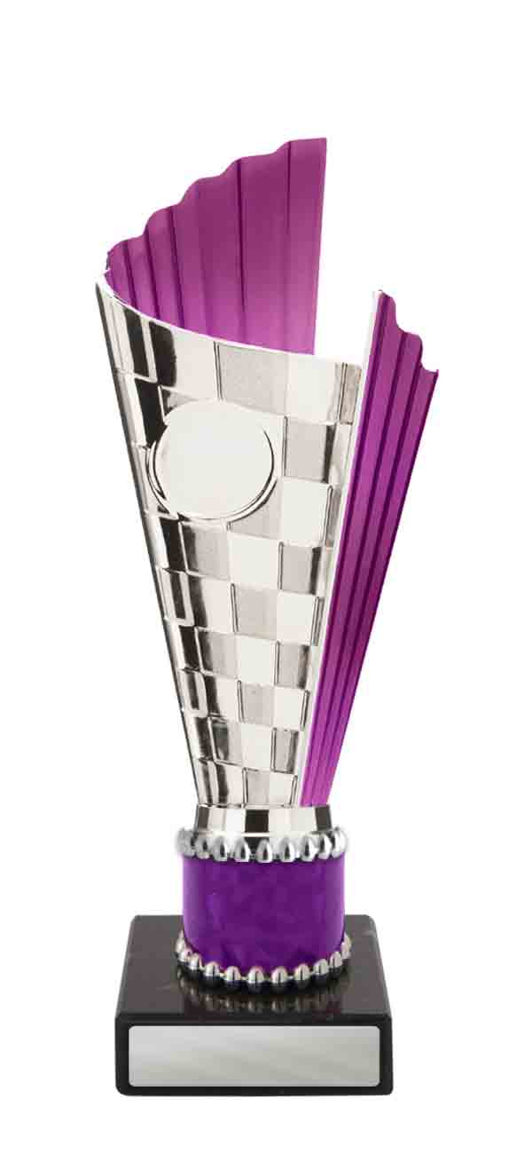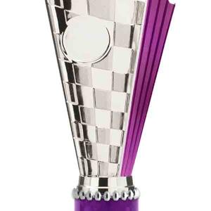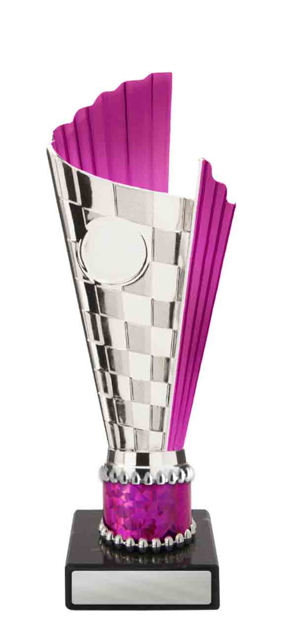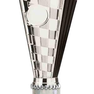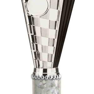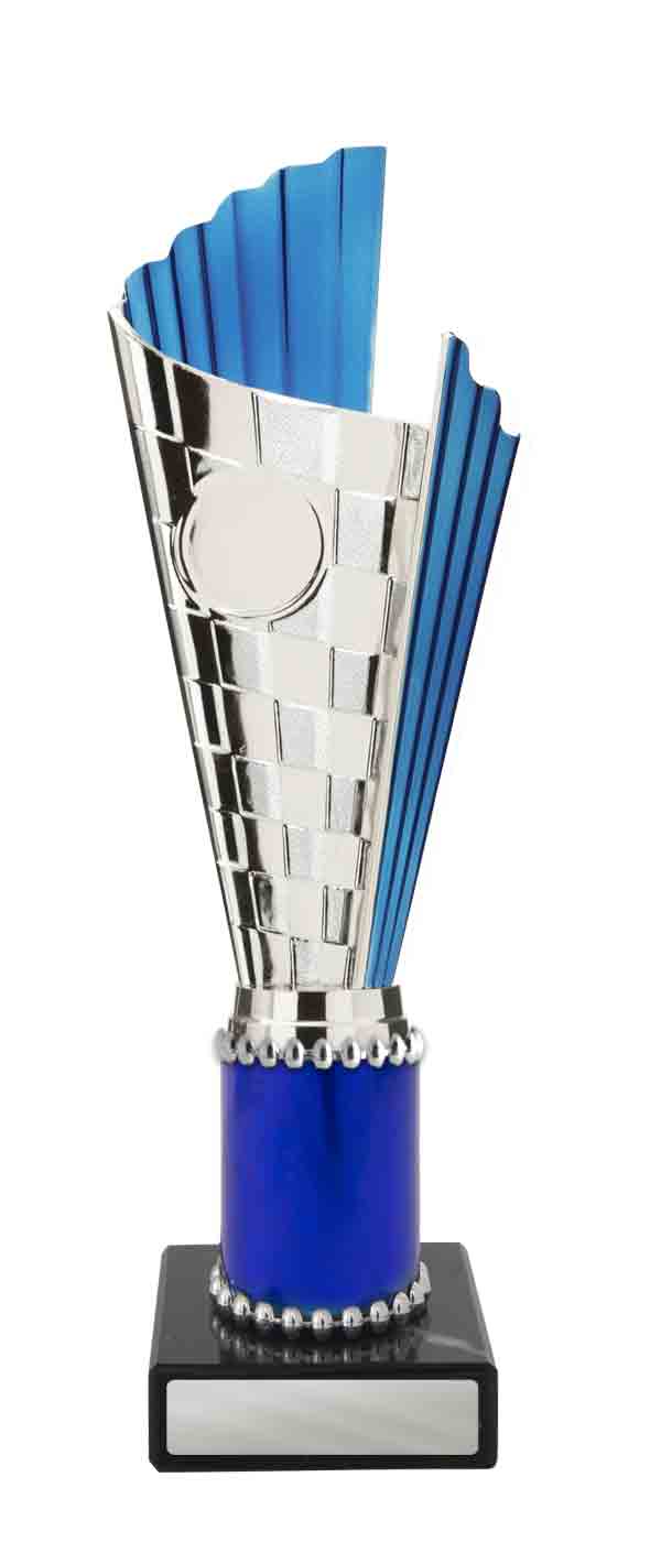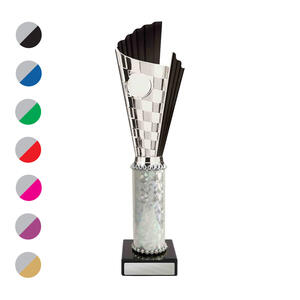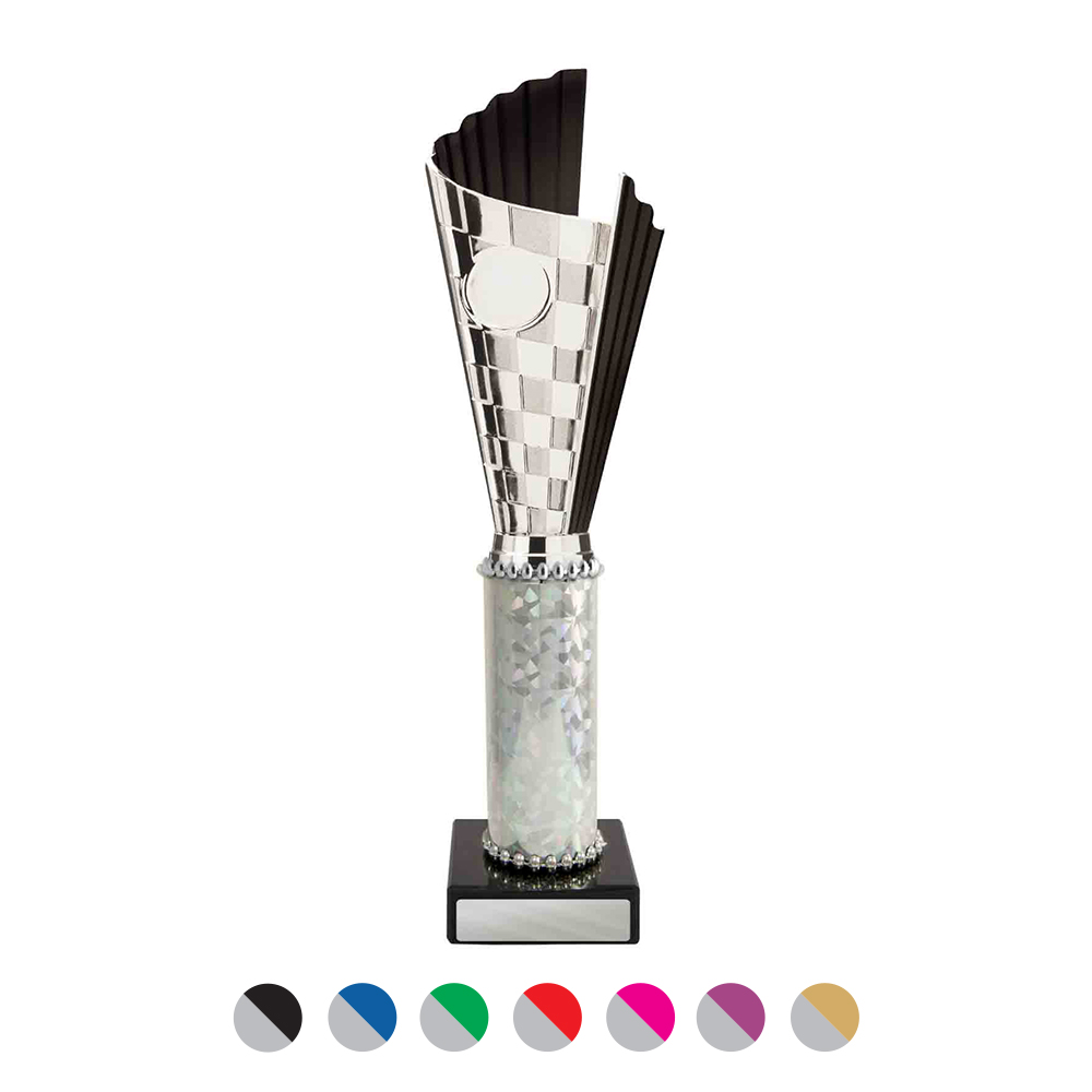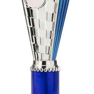 This versatile trophy cup delivers a professional finish in a choice of striking colour combinations, including silver with black, blue, gold, green, red, purple, or pink accents. Designed with a flared cup and a robust base, it stands out as both durable and elegant. It features a decorative design with a engraving plate suitable for laser engraving, making it a trusted choice for a broad range of sports trophies and achievement recognition.