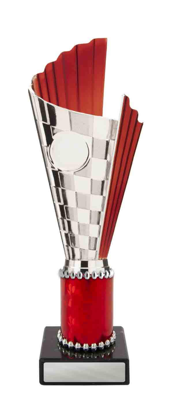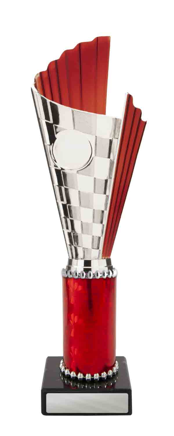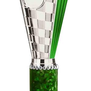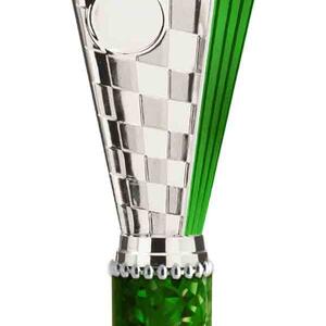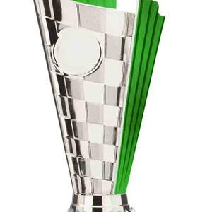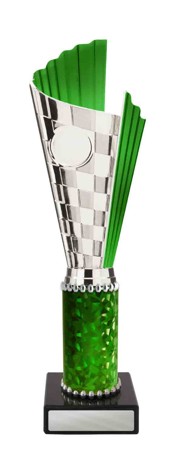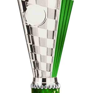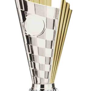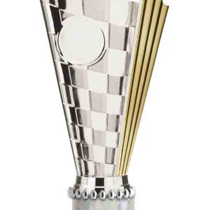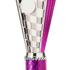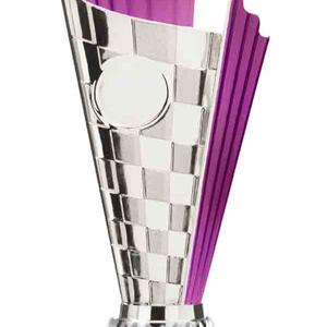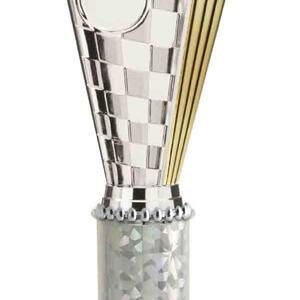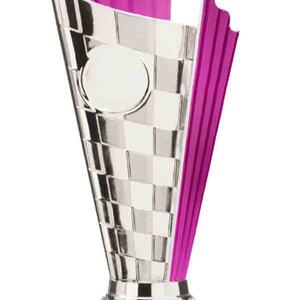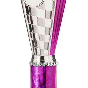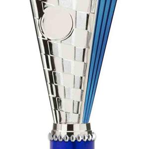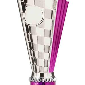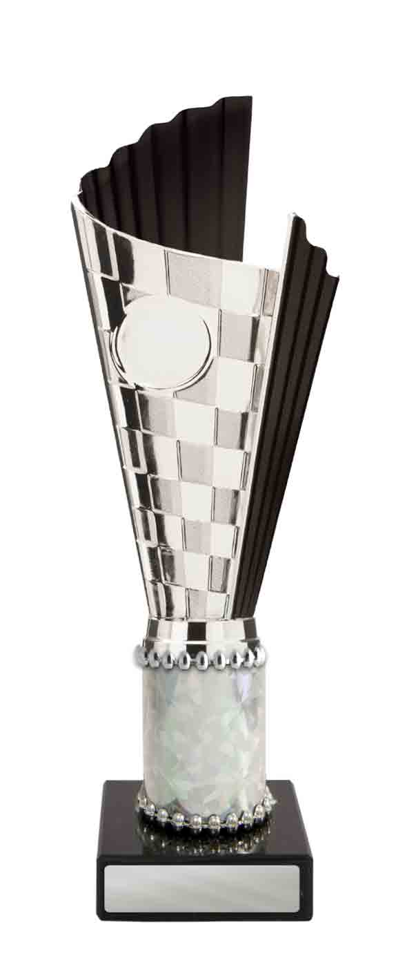 This versatile trophy cup delivers a professional finish in a choice of striking colour combinations, including silver with black, blue, gold, green, red, purple, or pink accents. Designed with a flared cup and a robust base, it stands out as both durable and elegant. It features a decorative design with a engraving plate suitable for laser engraving, making it a trusted choice for a broad range of sports trophies and achievement recognition.