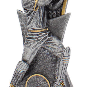 Celebrate cricketing achievement with this contemporary cricket trophy, featuring a detailed batter in full swing. Crafted in resilient silver and gold resin, its dynamic design captures the spirit of the game. The sturdy base provides a space for personalisation, making it an elegant choice for recognising standout moments on the cricket field.